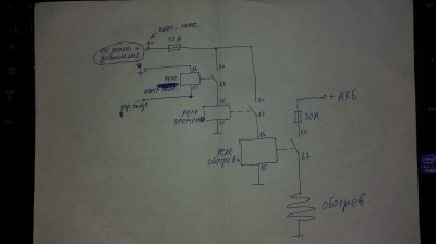 Коль, выяснилось что подогрев зеркал и заднего стекла управляется минусом, а если нужен управляющий плюс то его нужно тянуть с реле обогрева заднего стекла от багажника, либо мутить дополнительное реле чтоб управляющий минус подавал плюс в нашу схему. Но есть вариант без доп. реле, вот глянь: