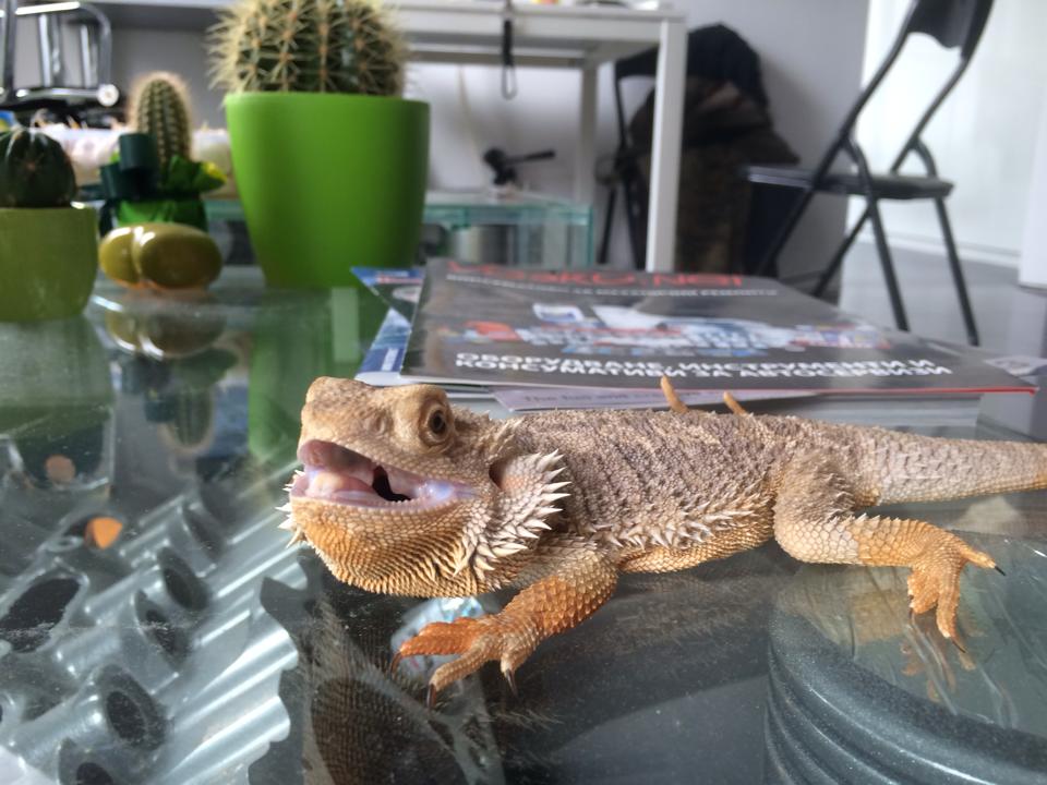 Вау! А чем кормишь? Ест он сверчков и всяких жучков-паучков. Ну и мучных червячков тоже. Мини-варан :D Я бы очканул рептилию дома держать, тем более в свитере :D Это бородатая агама или бородатый дракон. Он милашка и не кусается совершенно. А свитер чтобы поводок прицеплять - он у меня на плече сид...