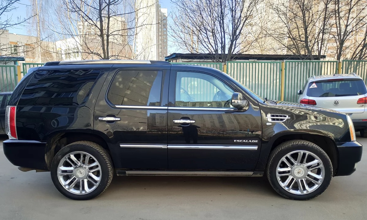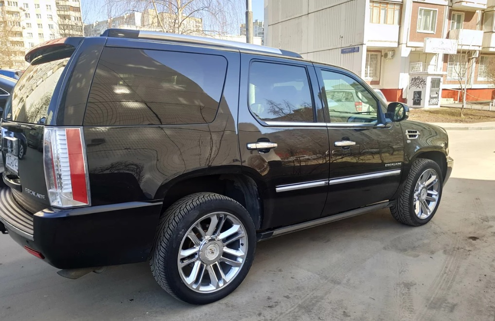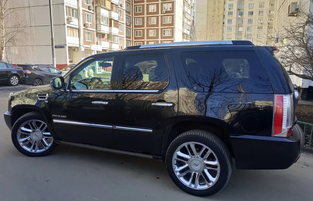 Собственно многомесячный поиск замены УАЗа на что-то более комфортное, интересное, удобное и не менее просторное закончился. В поле зрения были различные варианты, но преимущественно всё таки американские авто. В итоге купил Эскалейд 2011 года в черном цвете и комплектации Платинум. Хотел белый цвет, но то, что смотрел в таком цвете было либо убитое, либо не подходило по деньгам. А так как в приоритете было всё таки состояние автомобиля, а не цвет,то с чёрным пришлось свыкнуться. Колеса зима (R20) и лето (R22). Протектор ещё пару сезонов походит, а может и больше.