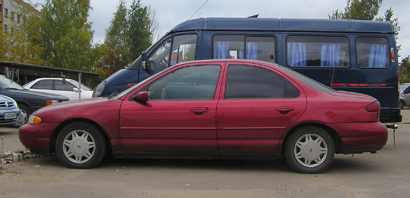 И хотя это перелицованный Mondeo, Америка в нём присутствует... Традиционный автомат (хотя и с двумя литрами движка), практически полный электронный фарш (не хватает ЦЗ и стеклоподъёмников сзади), но самое главное - такой же вишнёвый как и кузов - салон!!! Это, конечно смотрится бесподобно! По сравнению с рабочей лошадкой Mondeo - Contour в таком исполнении просто шикарен! Плюс к этому другой силуэт кузова, делающий машину гораздо более... раскошной, что ли! Эмоции от общения с ним за те почти два месяца, пока он был на нелегальном положении, только положительные (если не считать, что его надо немножко привести в порядок), и всё же... Мне ближе мой Aerostar!