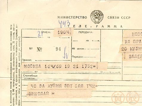 на почте такое бы не пропустили - им запрещено передавать всякую брань и т.д. даже "дурак" не во всяком почтовом отделении приняли бы.