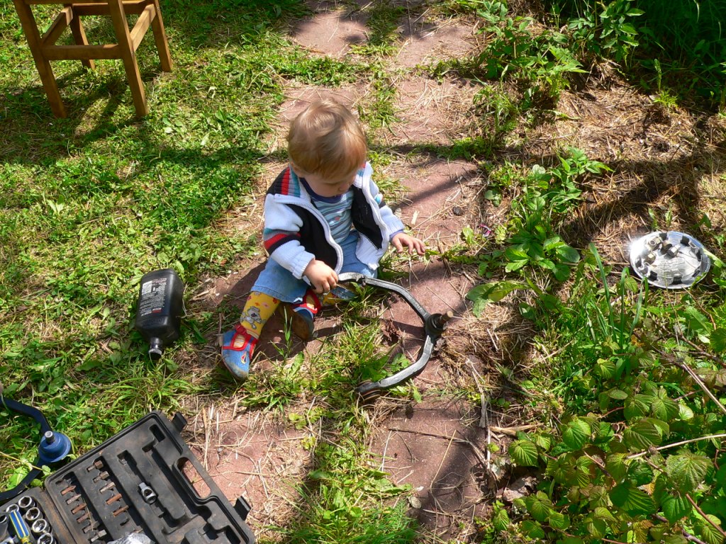 Началось с того, что я решил рычаги поменять. Но не прошло и 10 минут как мой киндер подошел и с огромным интересом приступил к "работе". От набора торцевых головок не могли 20 минут оторвать. Только забираем - он плачет. В общем, автолюбитель подрастающий