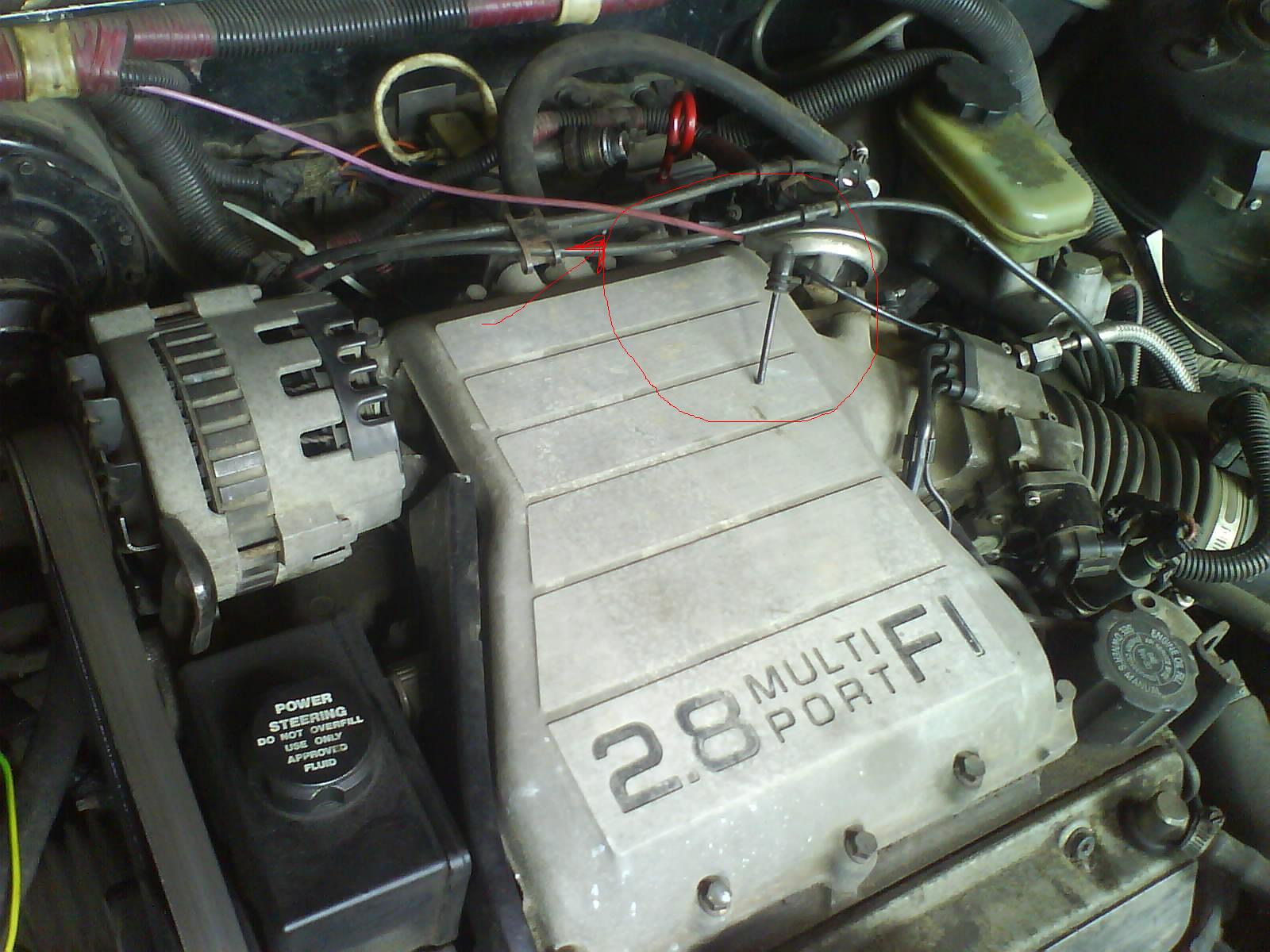 Вакуум этот цепляется к впускному коллектору 100%, после дроссельной заслонки понятно. Сейчас это отверстие обязательно чем-нибудь заткнуто, затычкой - потому как иначе бы обеднение было постоянное. Так что в радиусе длины трубки искать явно непотребную затычку - вот туда он и будет.