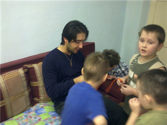 Нам, как всегда рады. Потихоньку перетаскав коробки и пакеты по скользкой лестнице, рассортировали "подарки" и разбрелись по группам. Сначала на первом этаже, потом перешли на второй. В первой группе, я опять побеседовал с воспитателем(не знаю как её зовут)с которым разговаривал в прошлую поездку на предмет "актуальных" нужд ДД. Прошлись по предыдущему списку, кое чего вычеркнули, кое чего добавили. Видно, что она(воспитатель) искренне "болеет" за детей и ей действительно "интересно" с ними заниматься. Ребята конечно же рады гостям, чего то там орут, тащат каждый за собой, хвастаются подарками. Шум, гвалт, возня. В общем, для них, это конечно же целое событие. В других группах явно не тише. Надувные шарики - хит сезона, а если учесть что насос оказался почему то один, собралась целая очередь, даже подраться успели. К слову сказать, все детишки одеты, выглядят опрятно, даже разглядели на них обувь, которую привозили в прошлый раз. Мальчиков заметно больше девочек, в одной группе вообще одни мальчишки. В старших группах, дети в большинстве обычные ребятки, особых отклонений не заметно. Видно как с возрастом и заботами воспитателей, детки меняются в лучшую сторону.