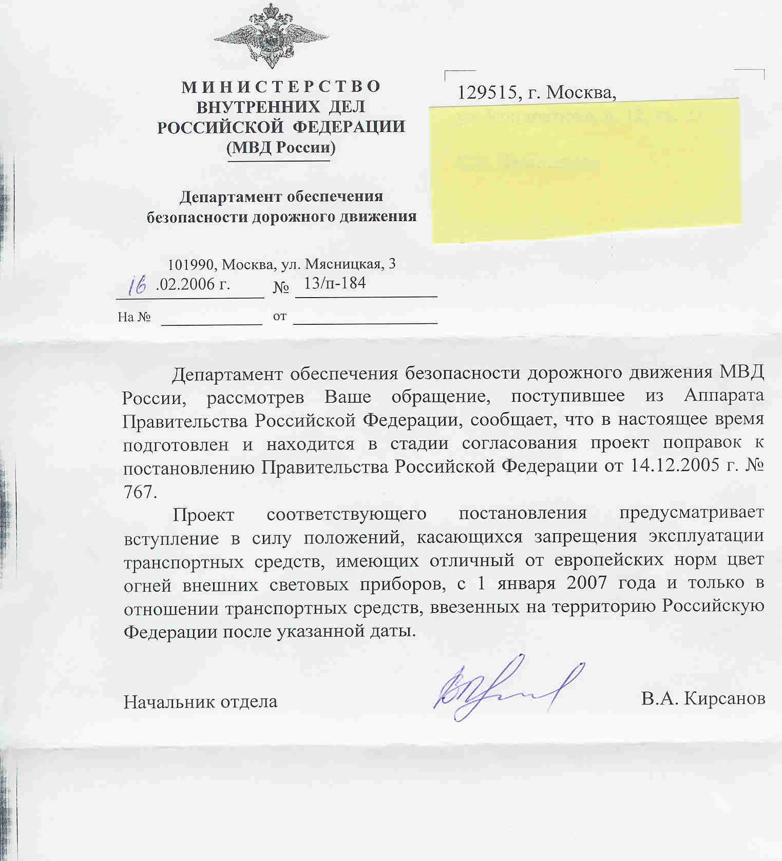 На днях пришел ответ из МВД на мой запрос в Правительство РФ. Скан прилагаю...