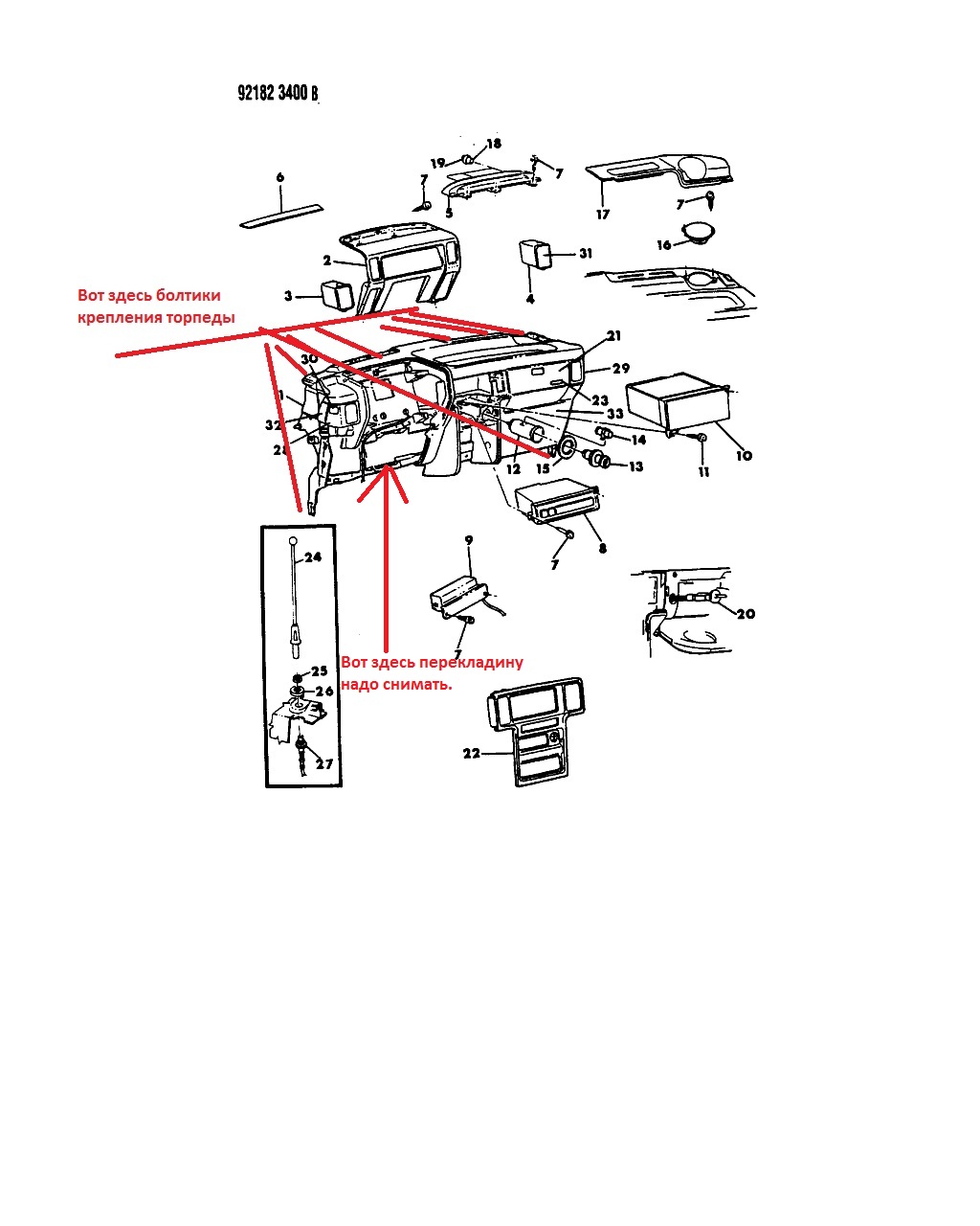 Если высокая торпеда,то надо снять верхнюю накладку с торпеды и под ней будут болтики крепления ближе к лобовому стеклу.
