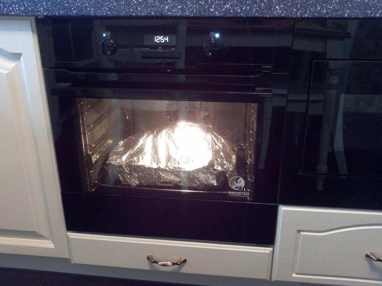 Заматываем фольгой и в духовку часика на три-три с половиной.