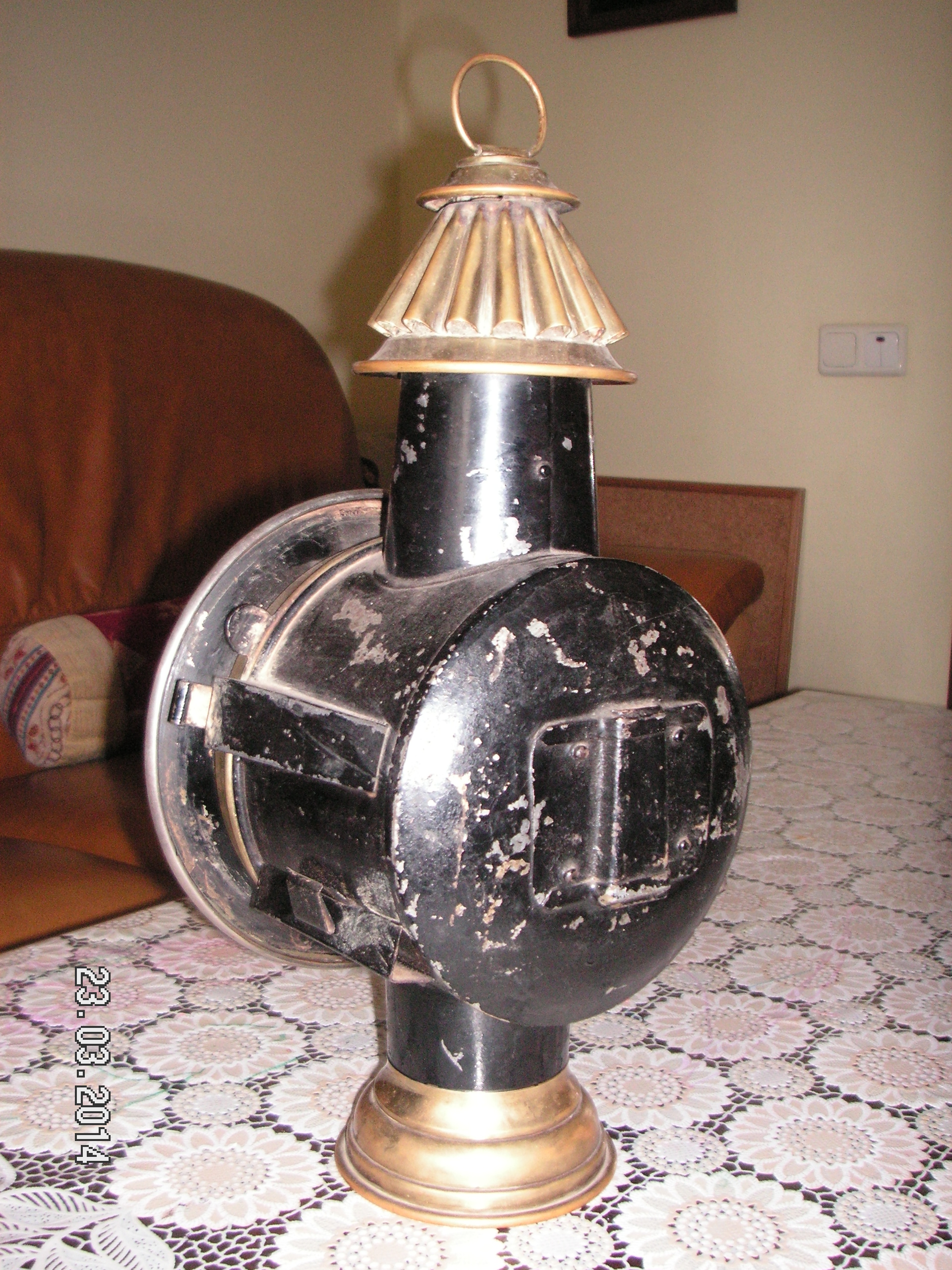 Главный геморрой был со снятием старой краски. Не знаю, что там за состав, но ее пришлось жечь газовой горелкой, потом травить смывкой, и только потом чистить железными щетками и шкурить. Пришлось разобрать весь фонарь, а потом его заново склепывать и паять перед покраской. Краска - акриловая черная, матовая. Потом несколько слоев матового лака. Все, как положено, с промежуточной полировкой. Медь была в хорошем состоянии, ее просто почистил пастой Гойя и поставил на место.