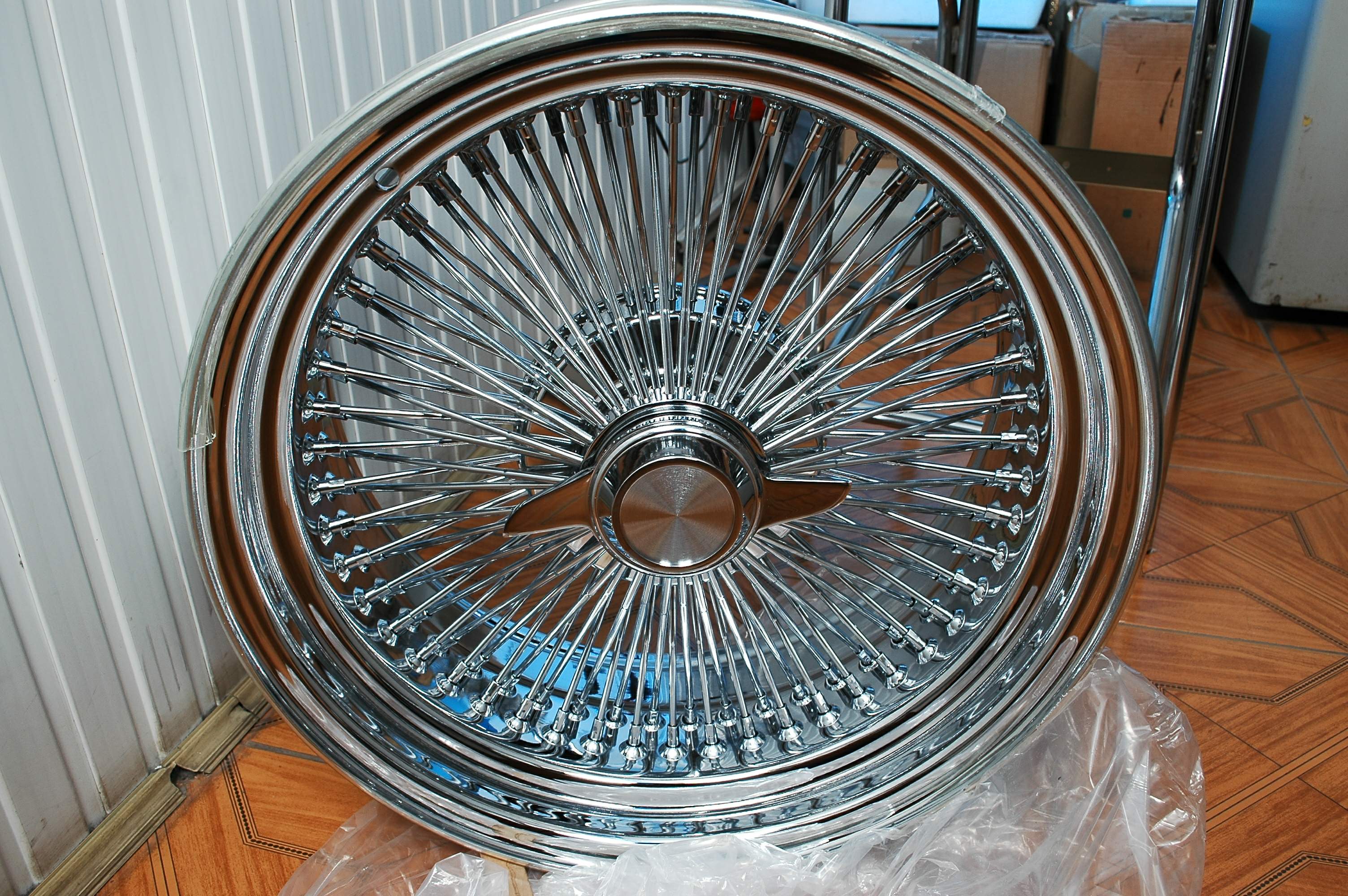 Продается комплект спицевых дисков на 15" дюймов, ширина 7". Вылет нулевой. Адаптеры под разные разболтовки. Дизайн центральных гаек на выбор. Полностью хромированные.