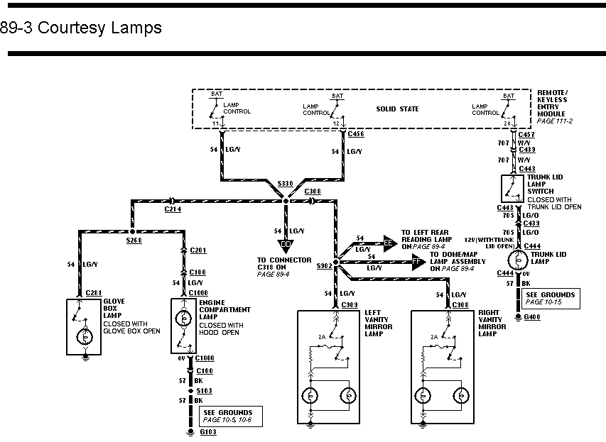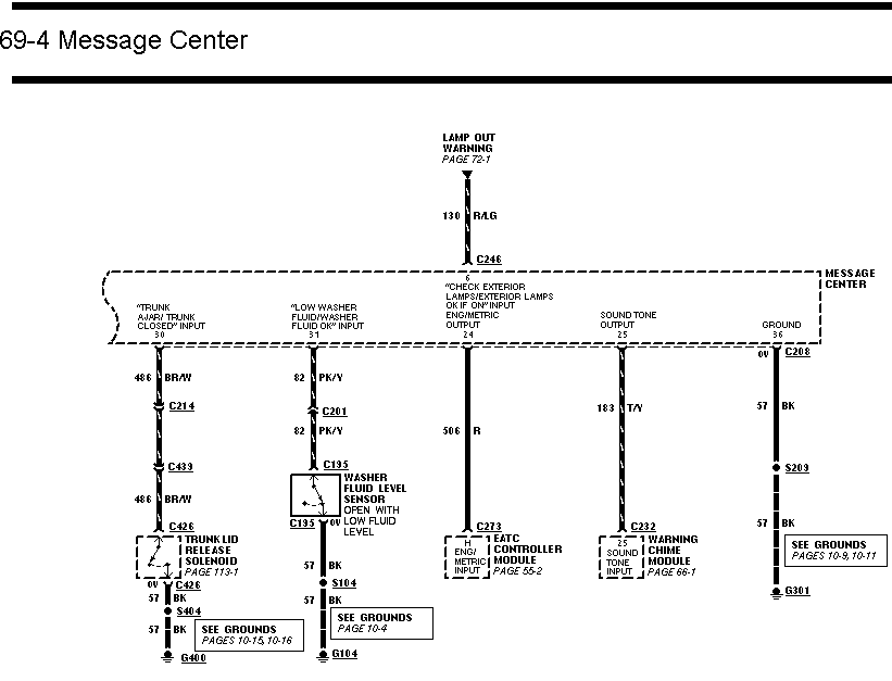 По схеме - рядом с датчиком написано "CLOSED WHEN TRUNK LID OPEN", что дает "замыкается при открытии крышки багажника" и далее по прилегающим цепям видно, что идет на лампу и источник 12 вольт, не забязанный на борткомп. Следовательно, борткомп узнает это как-то по-другому, идем в схему борткомпа и находим там ещё датчик со своим описанием (см. название цепи в блоке борткомпа).