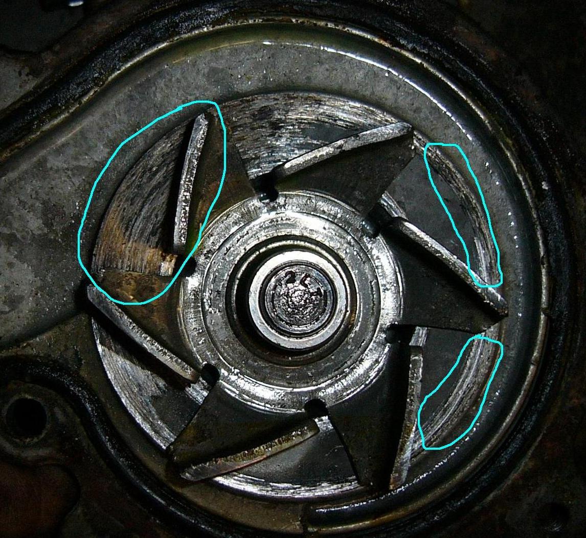 на второй фотке видно как перекосило нах помпу... видно как она задевала за лепестками за копус...