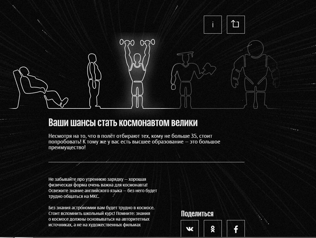 а, я почти идеальный космонавт... завалил последний вопрос - не узнал реального космонавта