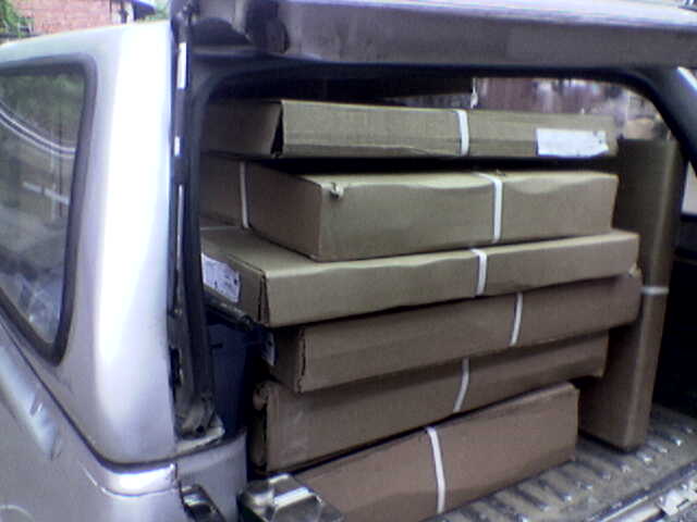 По моим прикидкам в него загружено (это все плотно упакованное ДСП) около тонны. :shock: