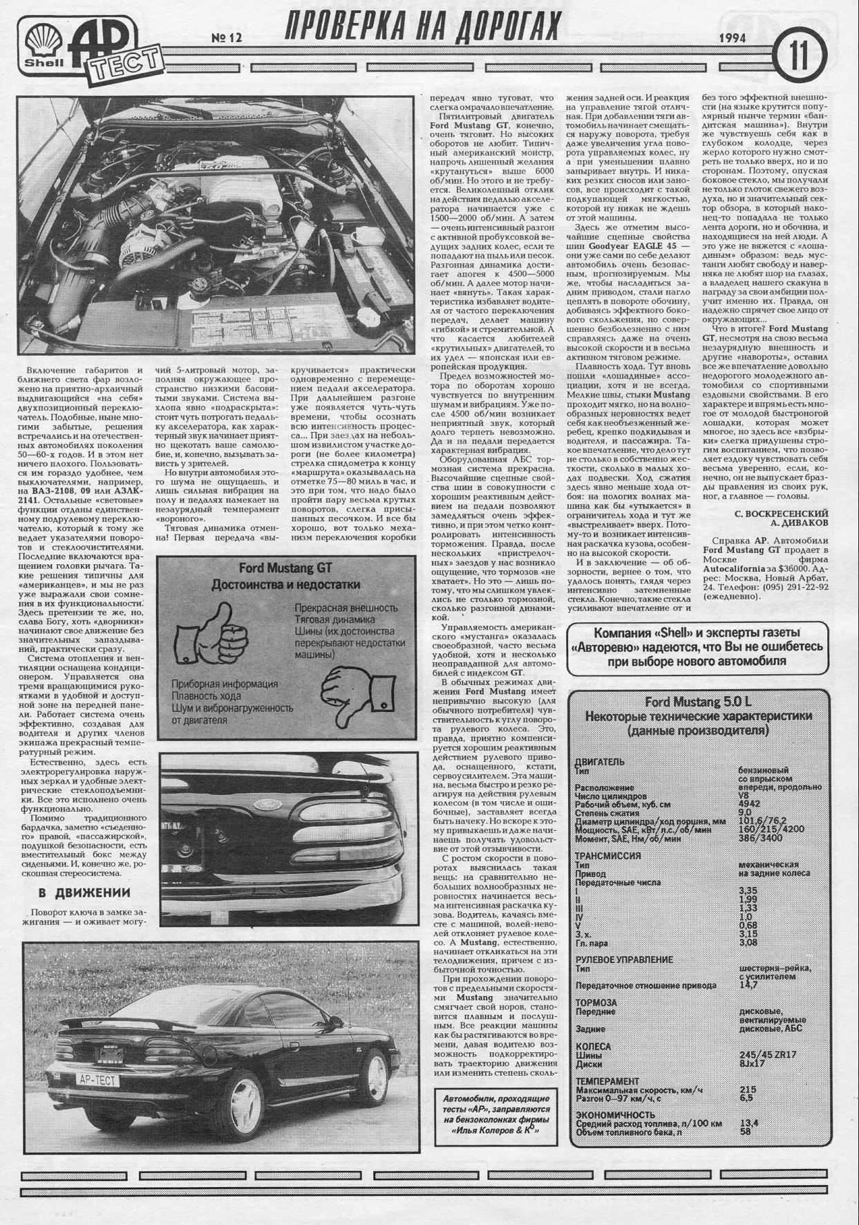 Авторевю прислало архив АР теста Мустанга за 94-й год