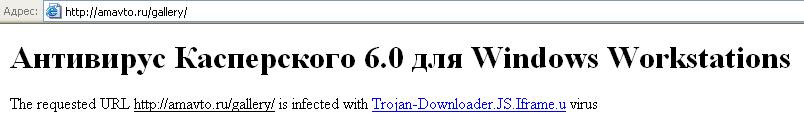 The requested URL http://www.amavto.ru/gallery/ is infected with Trojan-Downloader.JS.Iframe.u virus
