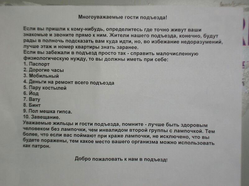 Обьявление в лифте.
