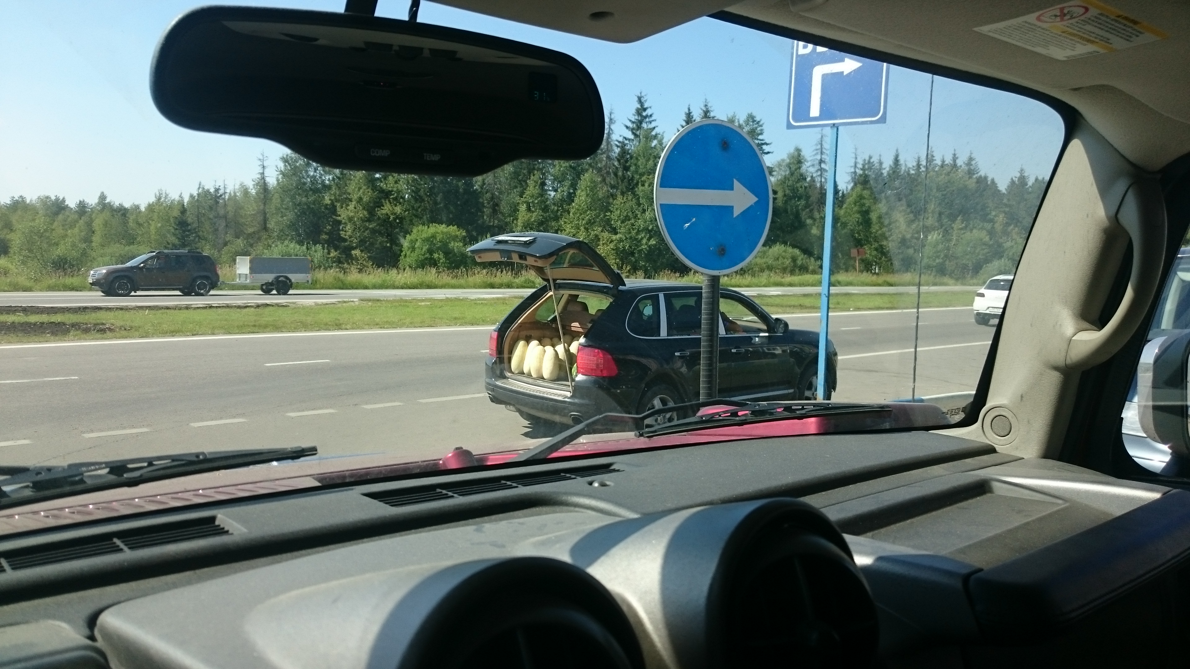 Стоит Порш, багажник подперт палкой, из каенна чурки дынями торгуют