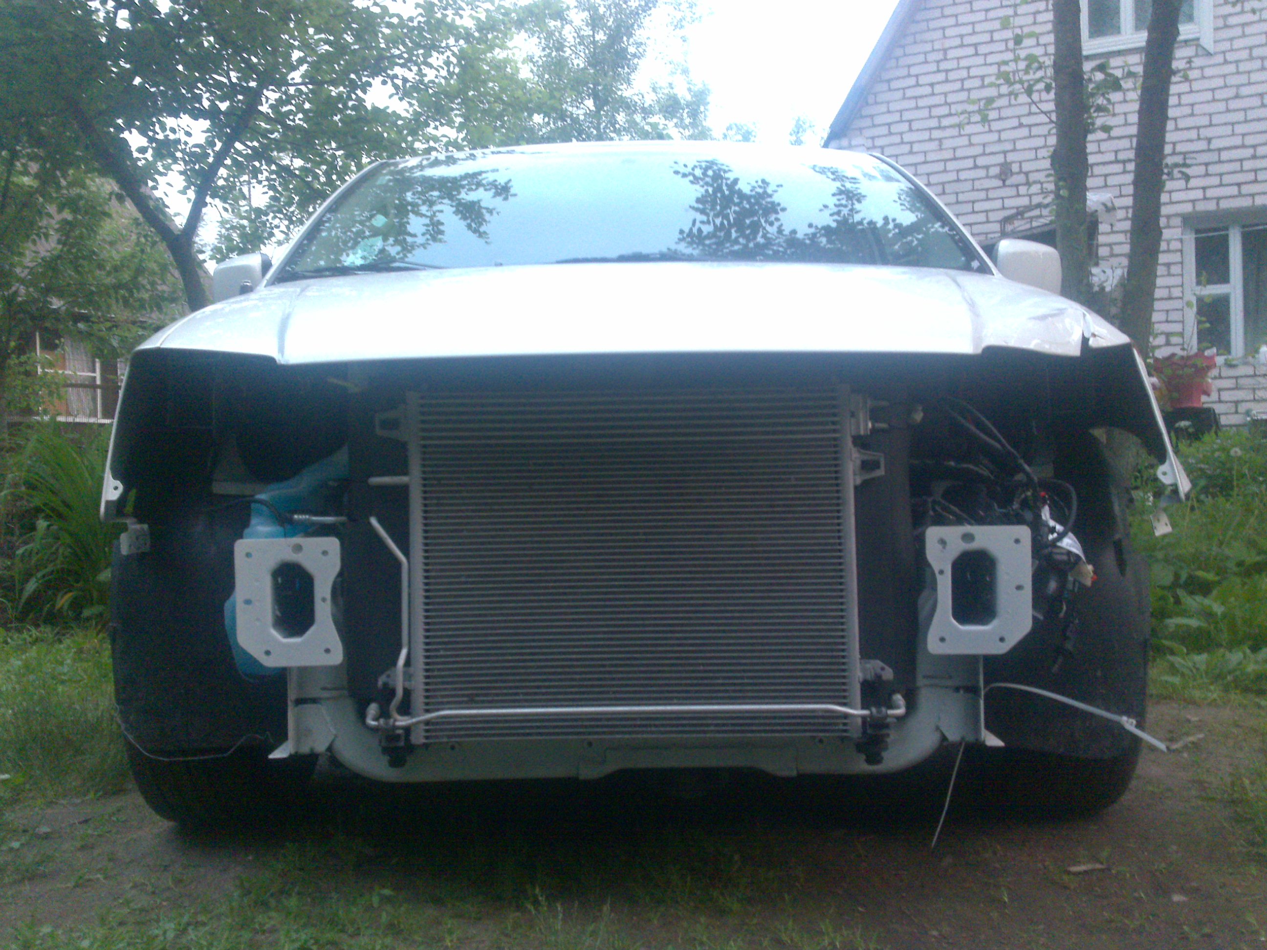 Начал делать машину. Трещина вверху "телевизора" радовала, но при снятии фары оказалось что он весь в кусках. Хорошие друзья гарантировали всё восстановить, но я вчера нашёл единственный в наличии в Минске новый, правда Таивань. Радует то что кузовные все в идеале и писдюля реально прошла в фару, правда цепанула крыло и кромку капота. Капот сегодня рехтанули, повесили новую оригинальную фару. "Телевизор" хоть и конченный узкоглазый тайвань, но стал хорошо. Бампер уже готов. Заодно (поскольку было всё разобранно по переду) кое-что доработал: