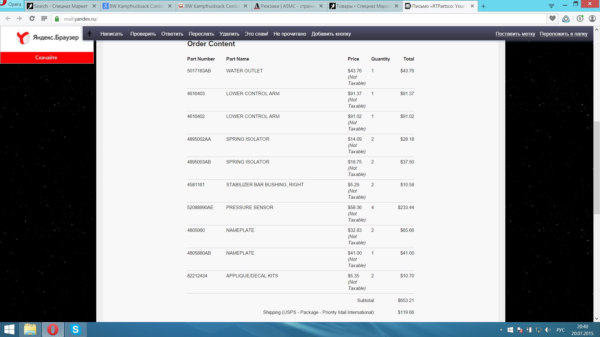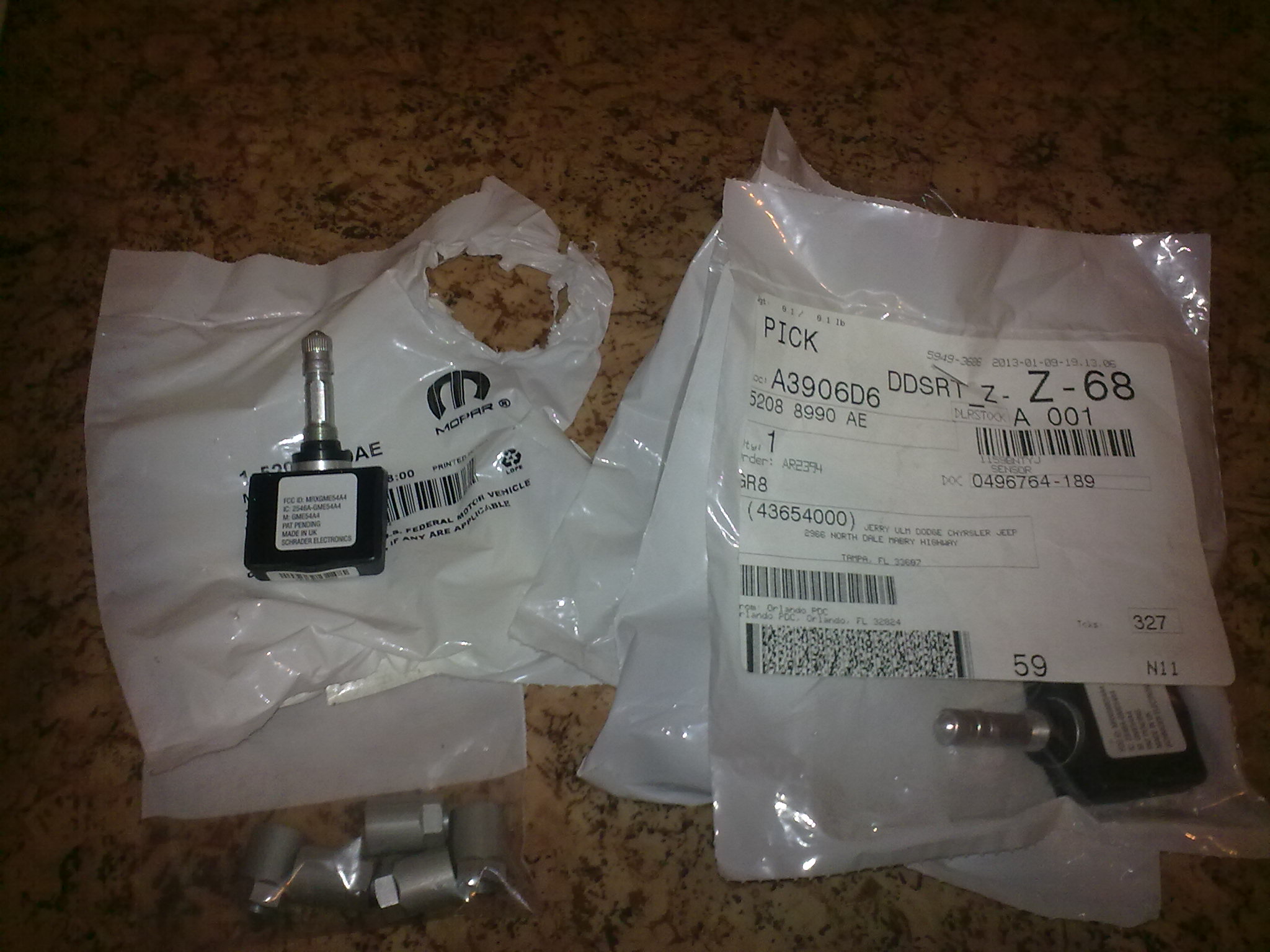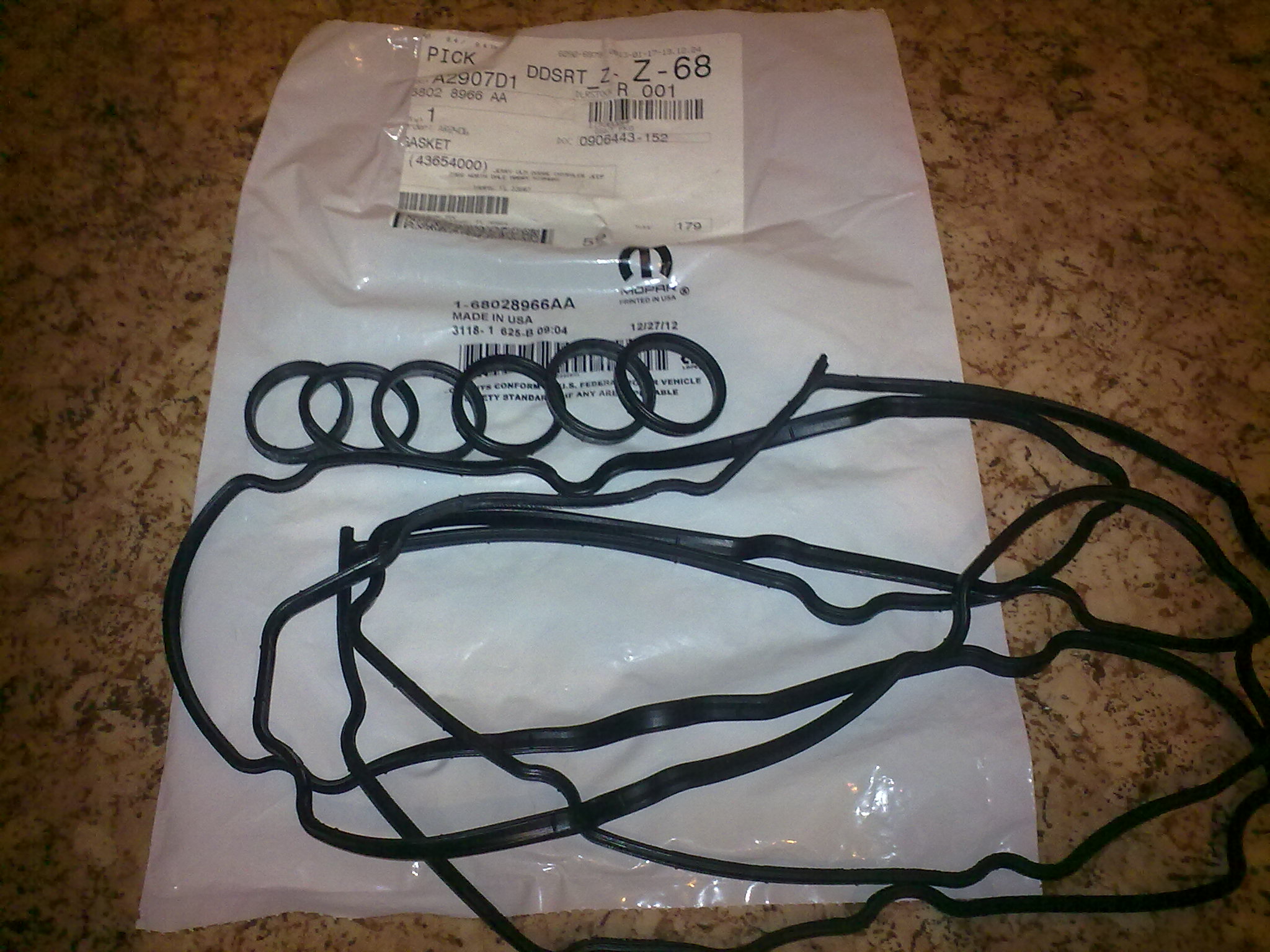 Пришла посылочка с комплектом прокладок (сочится масло из под клапанной крышки), новая крышка бензобака, недостающий комплект проводки к ранее купленной подсветке подкапотного пространства, датчики давления на летний комплект колес и гайки к ним.