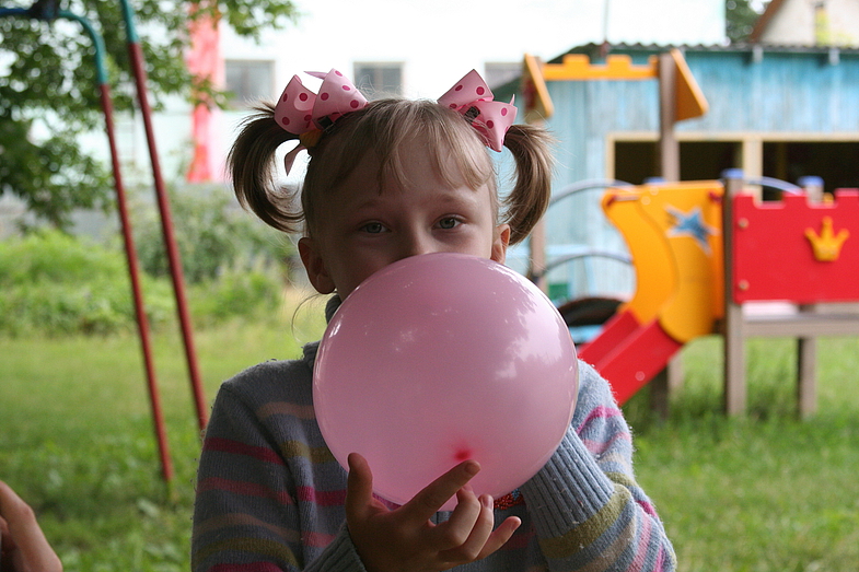 По приезду разгрузились, немного поговорили с сотрудниками и пошли на игровую площадку где резвились группы помладше, а затем вывели уже старших. Подарки не стали дарить(машинки, куклы), так как дети на улице и могут всё это растерять, да и видно было что им не до этого. Однако, соки и сладости разошлись на ура! В общем активно побегали, попинали мячи и теннис, по-обливались мыльным раствором и полопали шарики