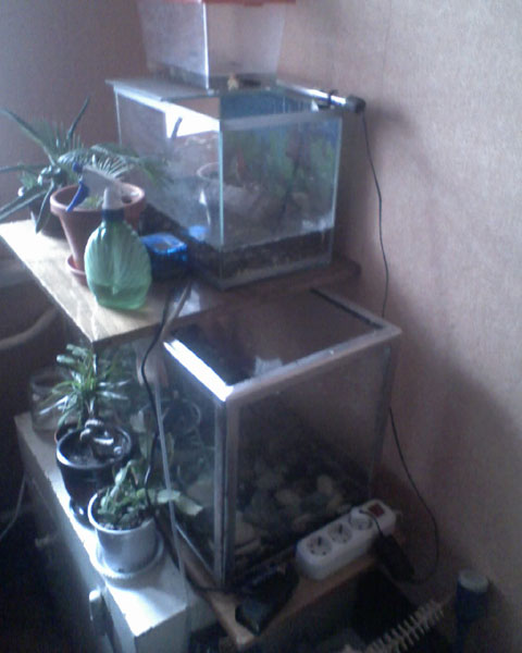 Н а 3-м живут 3 тритона другого вида (маленькие)
