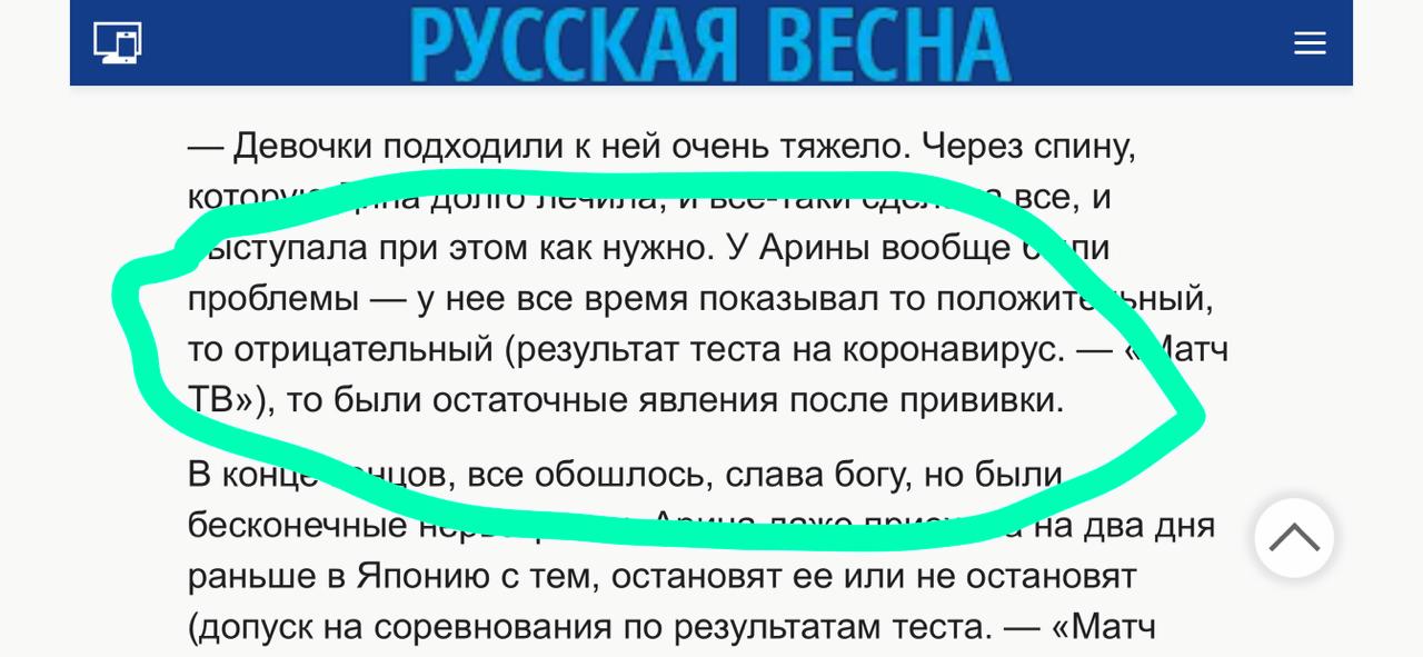 Тут, вчера читал интервью с Винер, так вот там в скользь была затронута тема короны, одна наша гимнастка многократно получала положительный тест, а далее восстанавливалась от прививки, это со слов Винер. Что за остаточные явления?