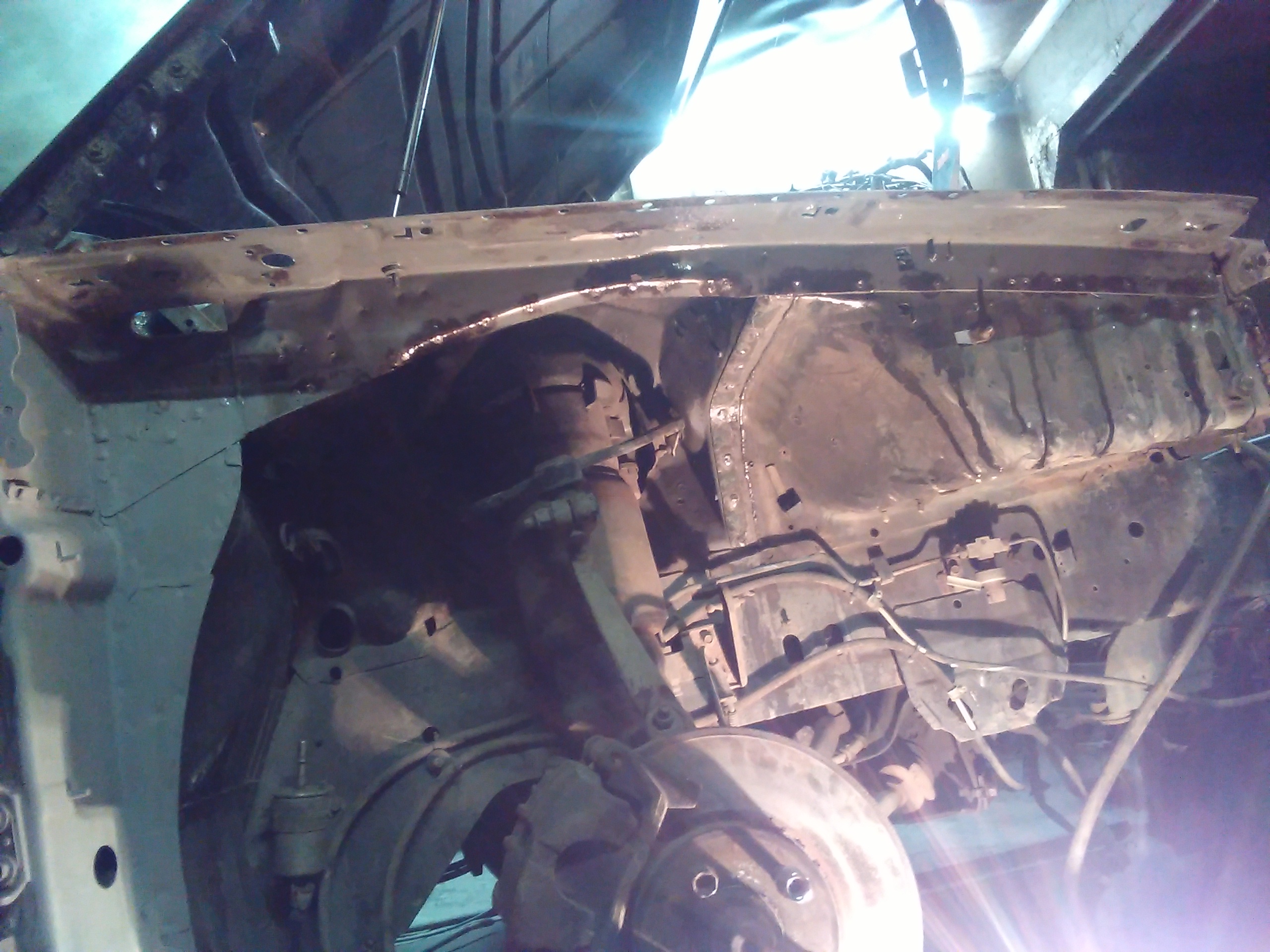 А вот и усилитель крыла крыла восстановлен, угол весь на который страшно было смотреть приобрёл человеческий вид. Ну с правой стороной закончено, осталось только зачистить сварочные точки и швы.