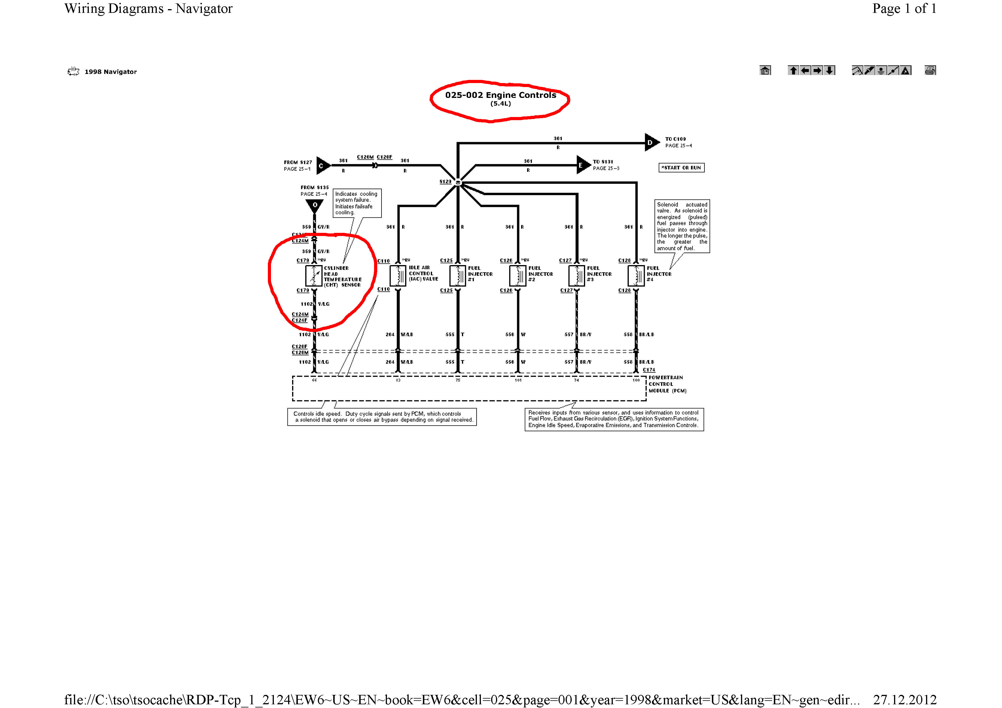в Навигаторе мотор 5.4 а не 4.6, и температурных датчика там два, тот который я дал и на прибор и на мозг, стоит на перемычке впускного коллектора за генератором, есть еще один датчик 8L3Z 6G004-A который в правой башке ближе к лобовому и он тоже на мозг, только он отключает часть цилиндров при перегреве ДВС. Что касается датчика с группой 12A648 то он для 4.6 (в прилепленных)