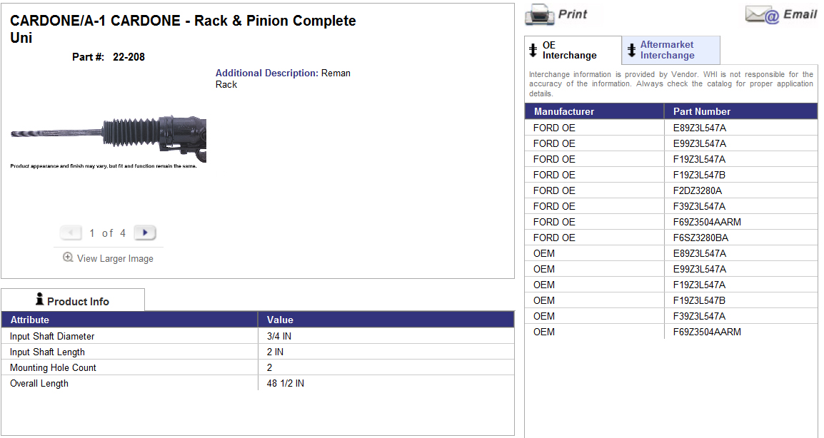 Тут еще интересный момент, Cardone пишет применяемость на Аэростар-93 но на именно тот оригинальный номер, что применяется в Аэростарах 93, кросс не даёт, оригинальный номер рейки F69Z 3504-ACRM но его в списке кроссов 22-208 нету...
