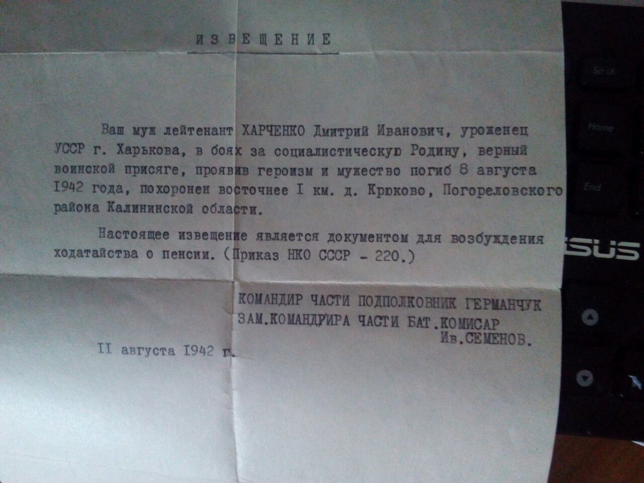 На фото мой прадед. Харченко Дмитрий Иванович 1903г.р. Погиб под Ржевом 08.08.1942г.