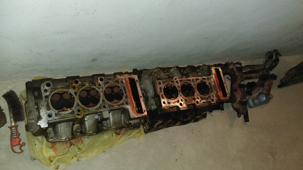 Спасибо Дим, открутил, но шкив не удалось снять, мой съемник слишком длинный и упирается в радиатор, возьму в аренду у ребят с ближайшего сервиса. Головы снял, визуально трещины на блоке и головке в районе второго цилиндра не наблюдаются, прокладка тоже похоже цела, но по поршню и кромке прокладки видно что именно в этом цилиндре бывал антифриз. Головки перевернул, залил керосин, оставил до понедельника.