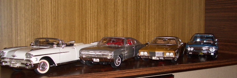 Слева направо: Кадиллак Эльдорадо, Додж Чарджер, Бьюик Ривера, Линкольн Континенталь. Все 1:18.