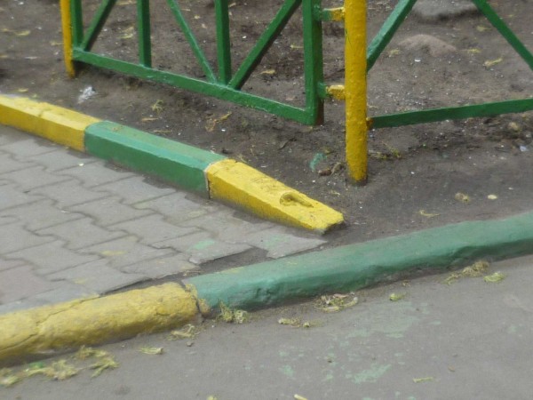 Во время работ по благоустройству во дворе были окрашены бордюры, однако на дорожке ведущей к детской площадке бордюр был окрашен вместе с лежащей на ней собачьей какашкой (фото прилагаю). Убедительная просьба объяснить вашим работникам, что это не нормально и так делать нельзя, немедленно убрать эту высокохудожественную инсталляцию и окрасить бордюр заново.