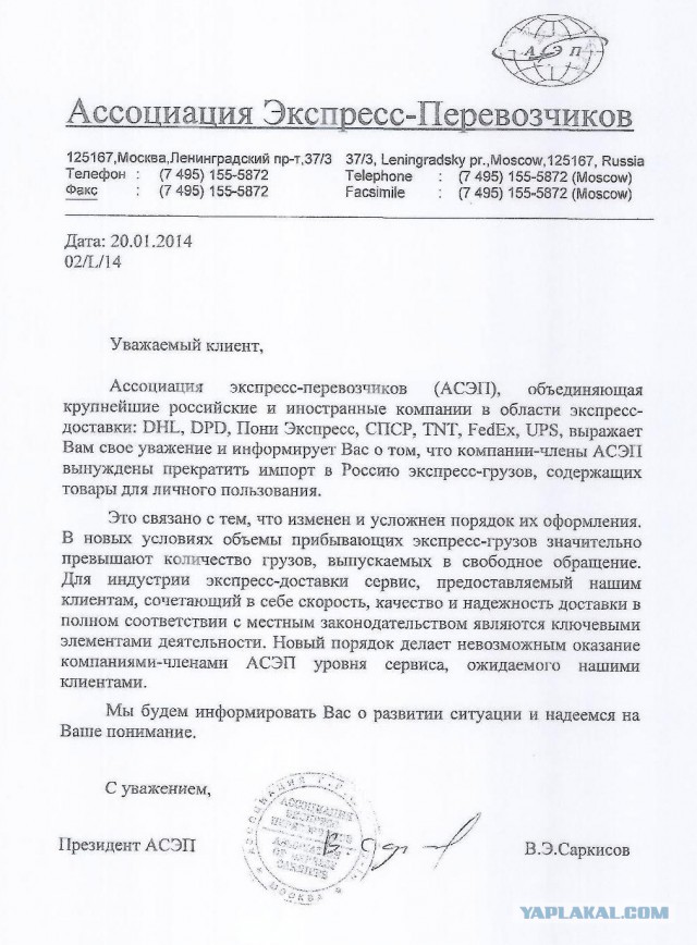 А может и не "утка" http://www.tks.ru/reviews/2014/01/24/01 фиг их поймешь, мытники молчат как в рот воды набрали. Лично мне вчера Fedex доставили как всегда, без всяких проблем, правда там только документы были.