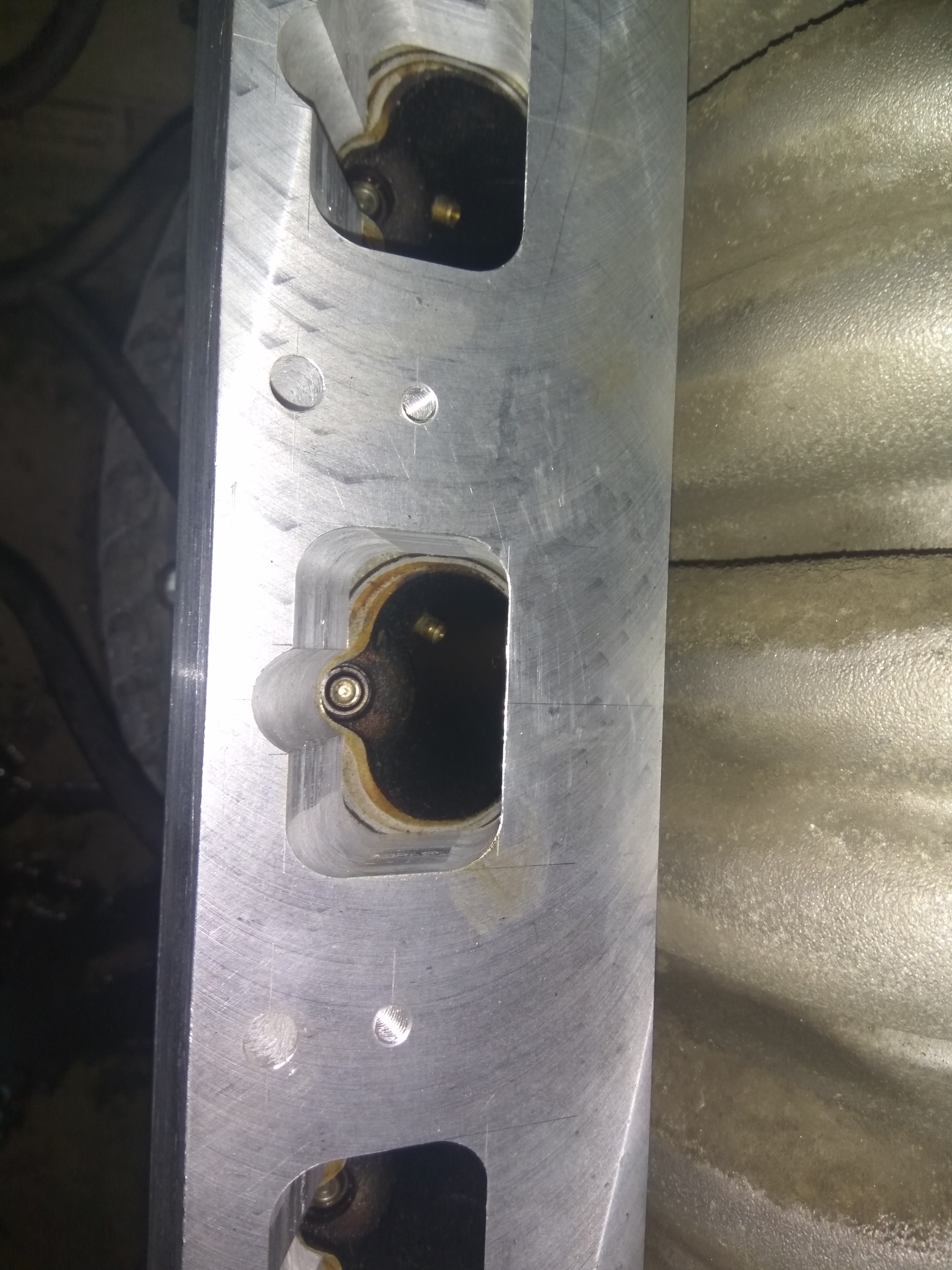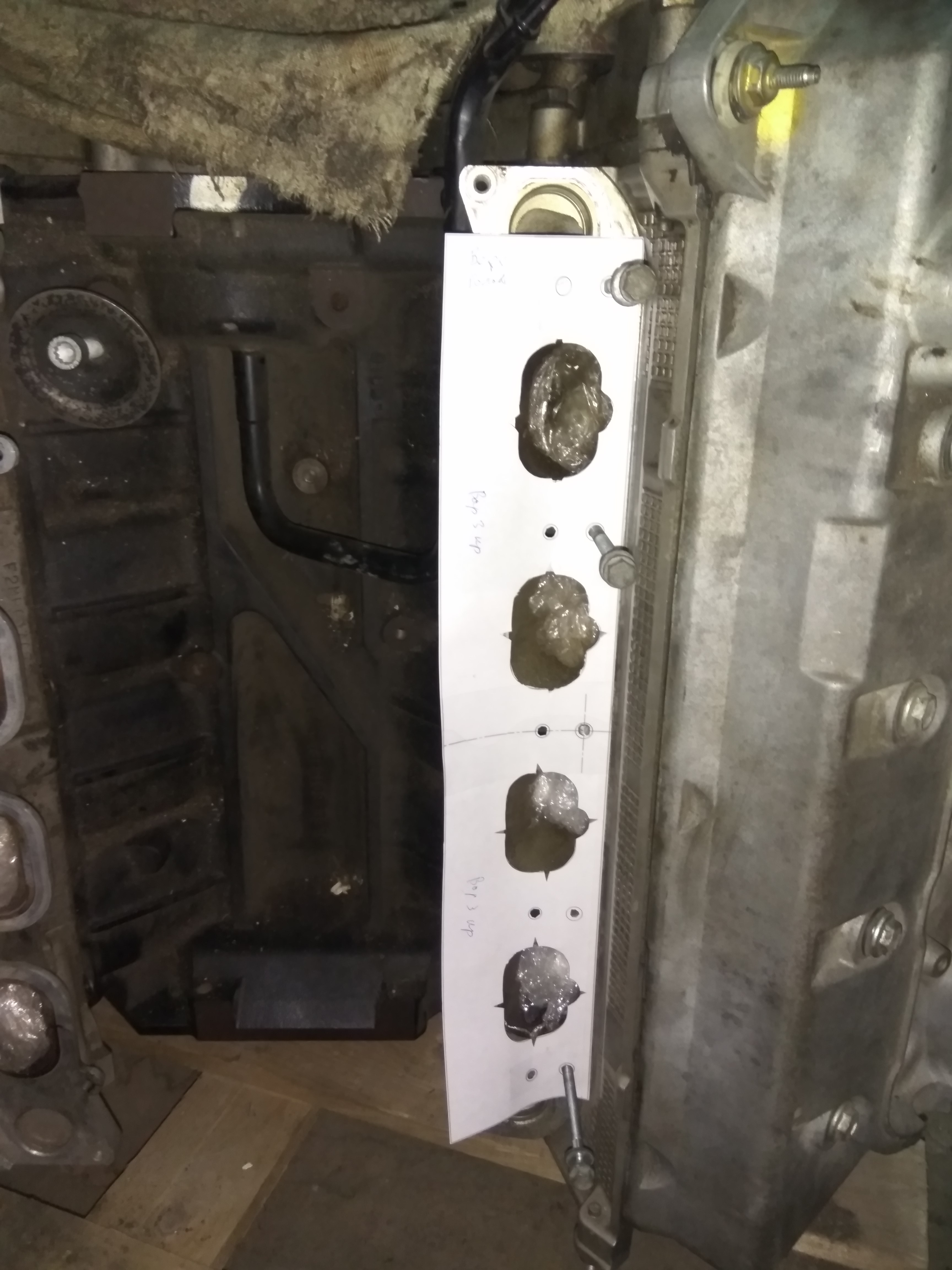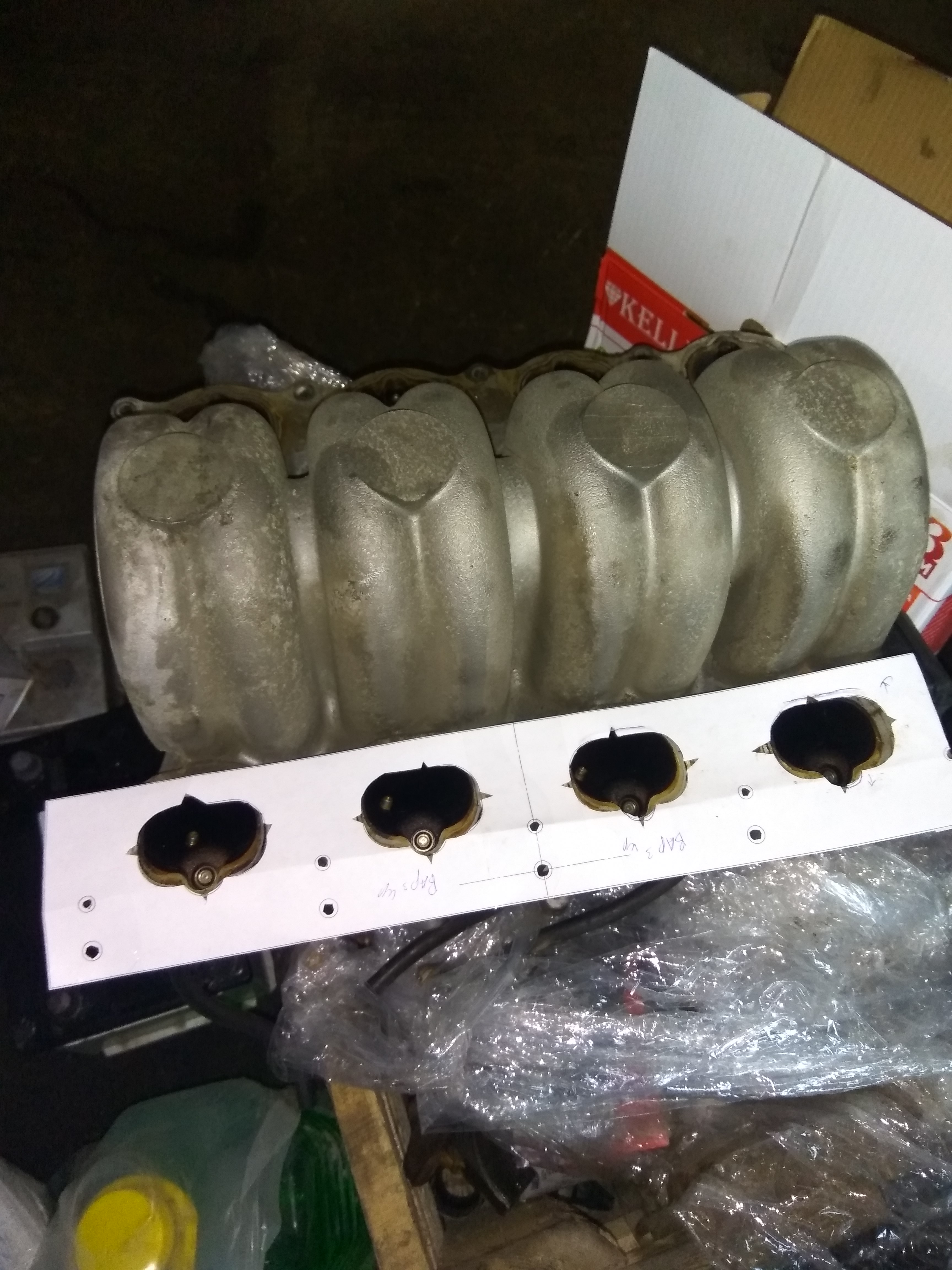 Окна в проставках были сделаны размером как на головах мотора от навигатора. Заметно, что на впускном коллекторе от авиатора окна меньше.