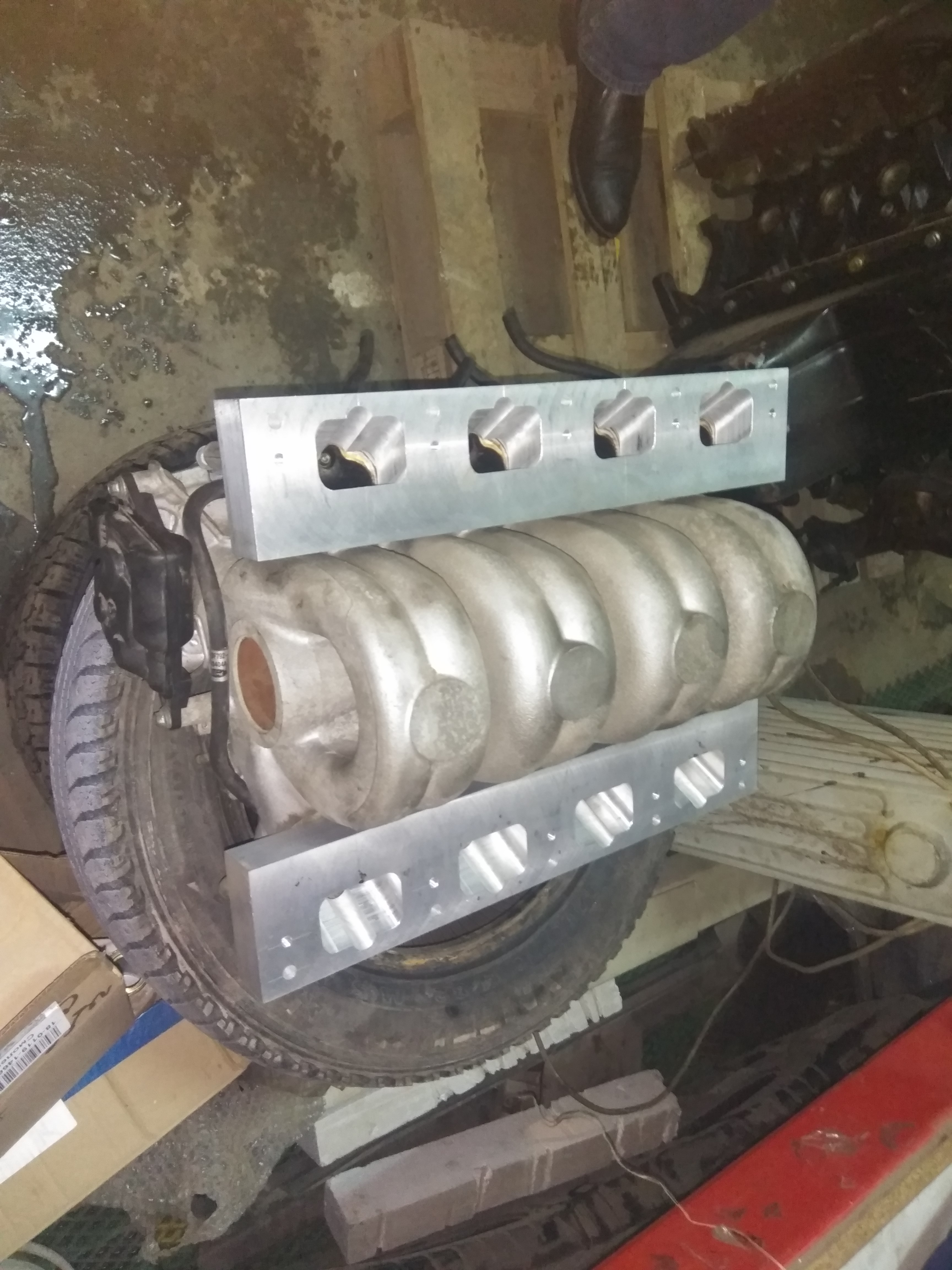 Проставки готовы. Теперь вручную допилить осталось отверстия под охлаждение. Планировал все на герметик... Теперь наверное проставки через герметик к коллектору, а вот между головой и проставкой будет прокладка. Сейчас стоит вопрос с драйв плитой. Она нужна чтоб начать все собирать и устанавливать в авто, впуск с прокладками меня не пугают теперь.