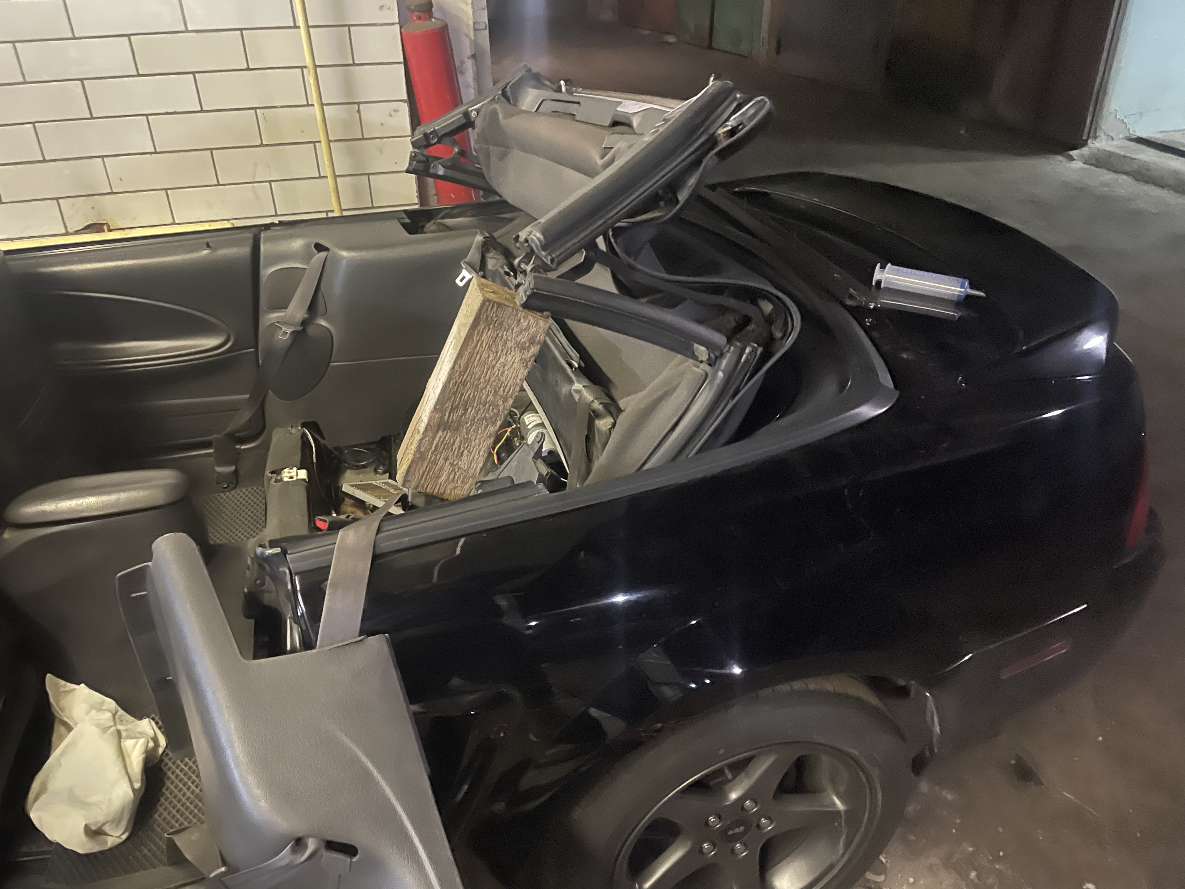 Приключения продолжаются. 3 января поставил новую гидравлику крыши и открыл кабриолетный сезон. Машина меня встретила радостно, аж лужу антифриза налила под собой.