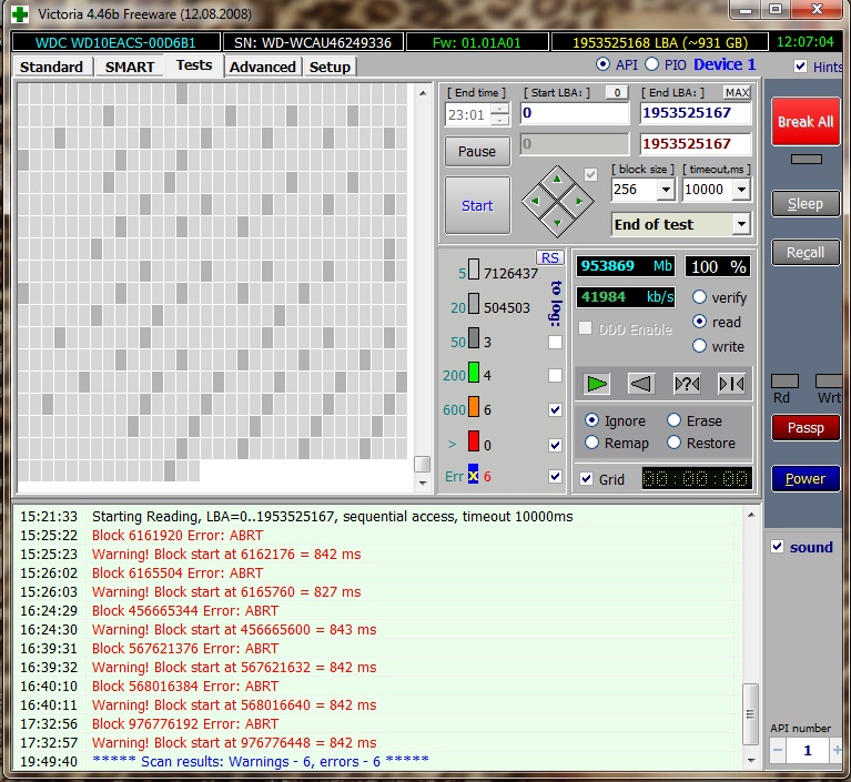 Если я правильно понимаю, обнаружилось 6 битых секторов. Или как там их правильно назвать.