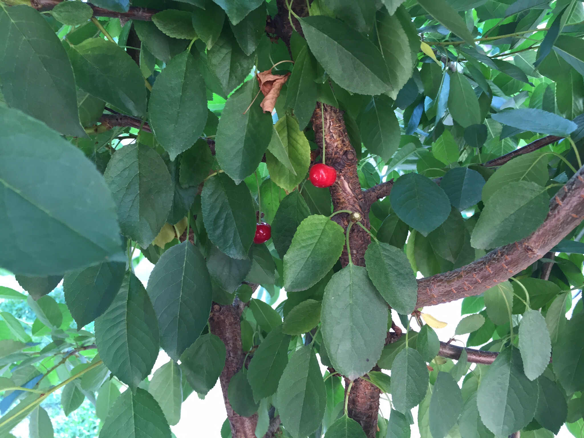 ну и чтобы продолжить нашу мажорную тему похвалюсь вишней, которая наконец-то дала ягоды. Руст наверно опять будет смеятся мол что там две вишинки... :) трудно понять радость двум вишинкам с дерева в которое было много положено сил чтобы его спасти... ведь у настоящих мужиков деревья растут сами по себе :)