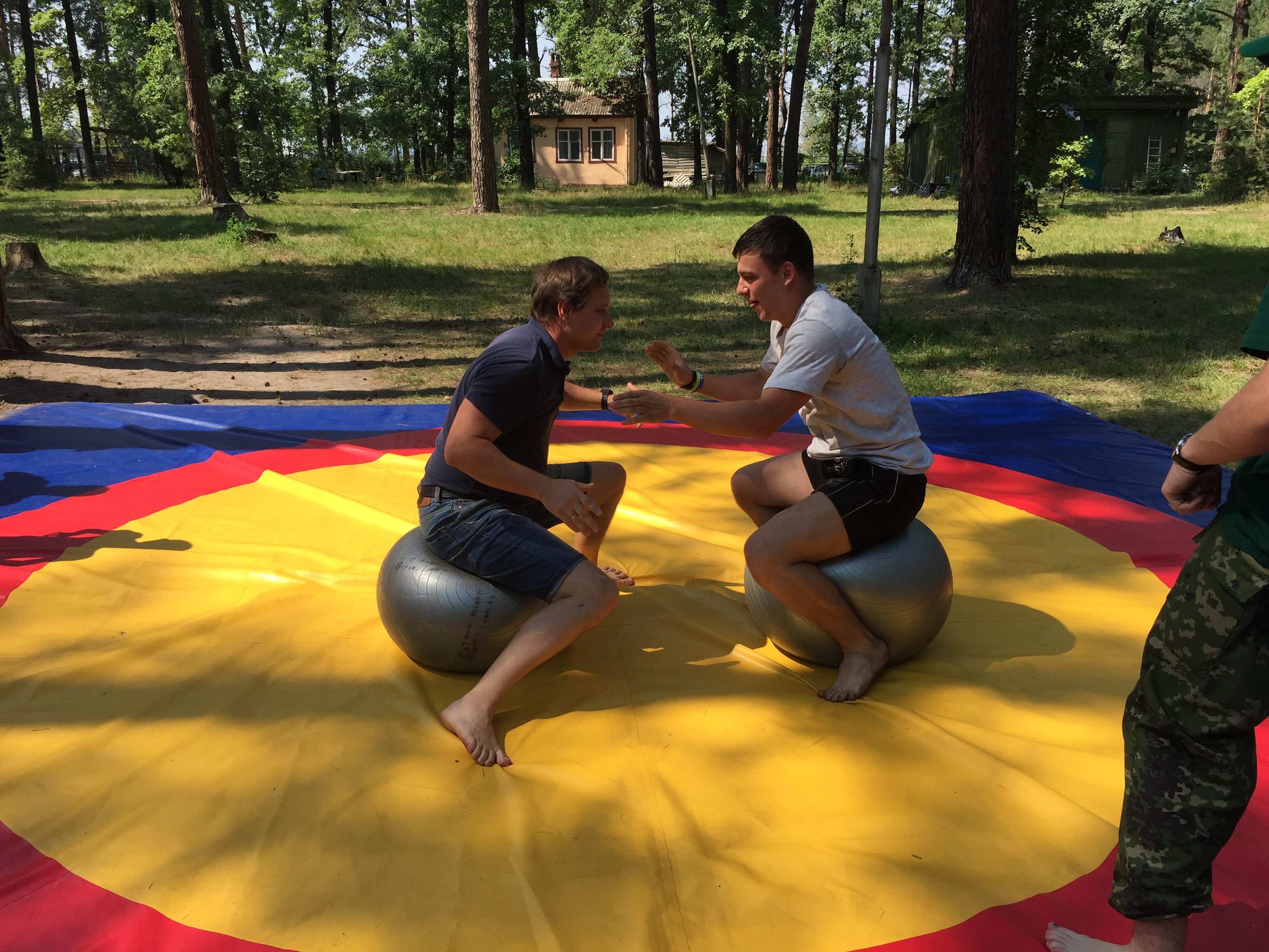 Но далее было интереснее - надо было бороться на мячах - парни молодые, достаточно рослые, но опыт победил