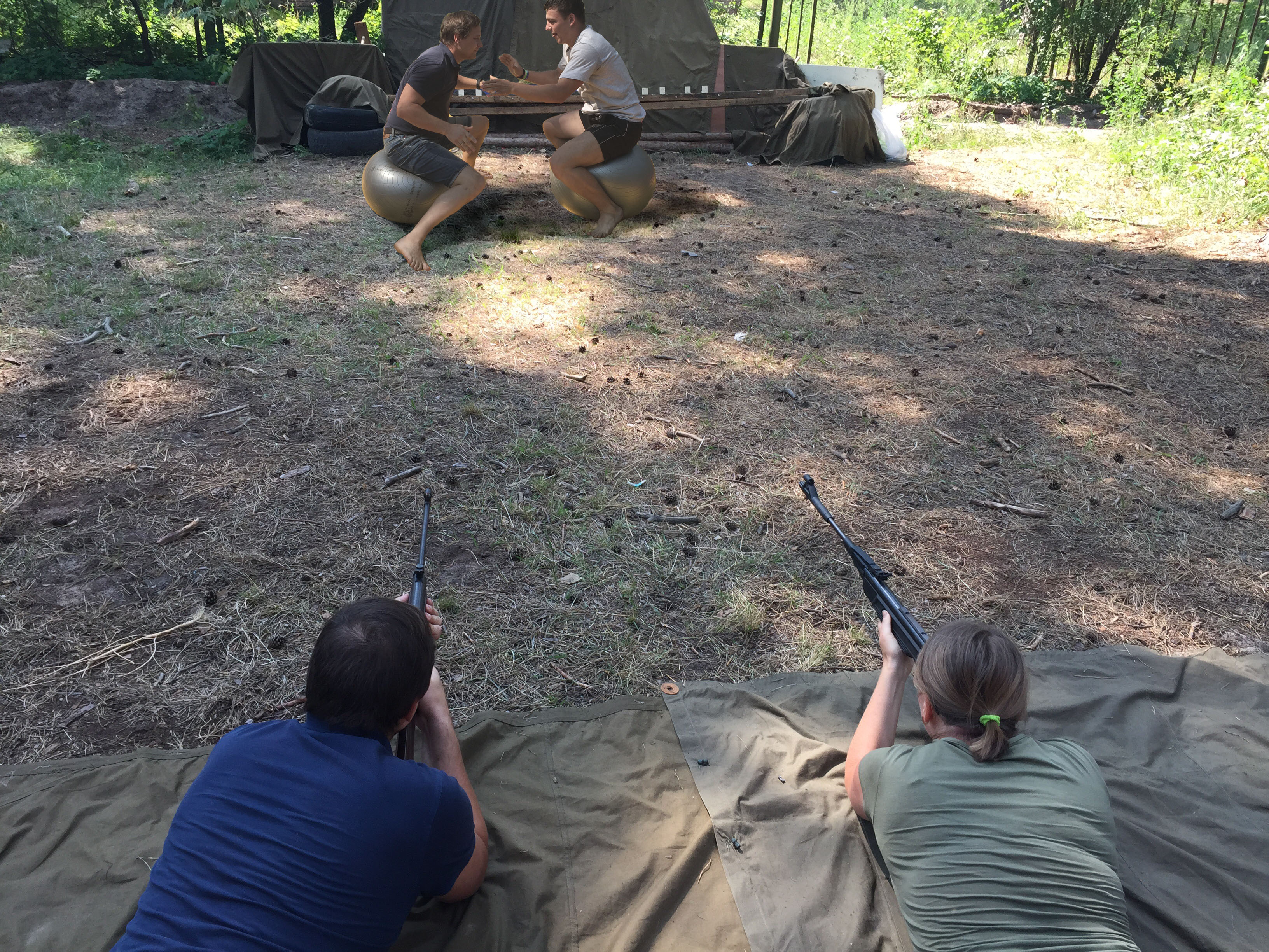 Сегодня был родительский день у детей в лагере. Родители должны были учавствовать в различных конкурсах, зарабатывая очки для отрядов своих детей. Ну так вот в стрельбе конечно все оказалось не сложно - вначале я было переживал потому как винтовка была старая и никто из родителей из нее не попадал, я видел что пули кладутся выше, ну взял чуть ниже и в итоге 5 из 5