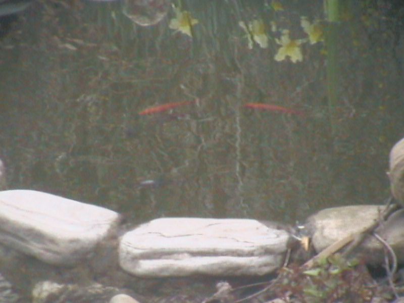С прудом что и как- неизвестно.Есть предположение что делался в качестве колодца,потом с верхней части участка от родника пустили водопровод,а сюда рыбок.