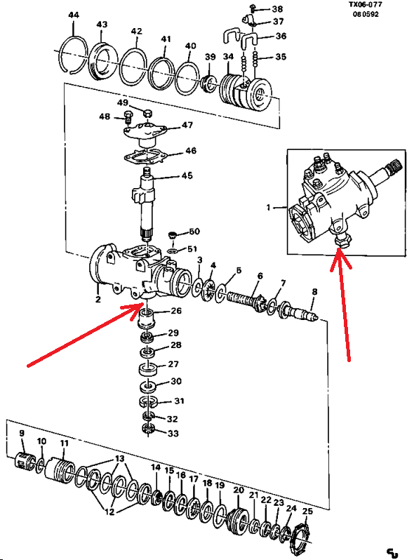 Если течет где ты указал, то ACDelco# 36350650 (pitman shaft seal kit lower)