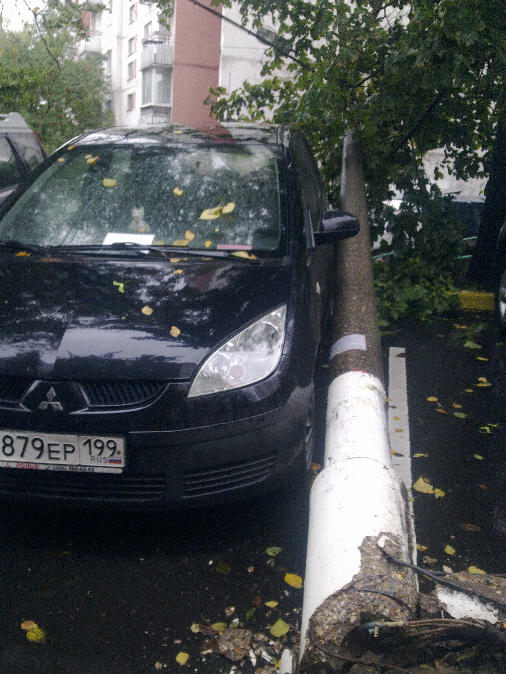 Посмотрите на арматуру в месте слома столба. Столб падал правее машины на пол метра а только потом по наклонной влево перекатил,арматура только и сдержала от от бокового удара по авто.