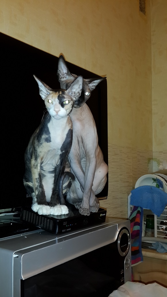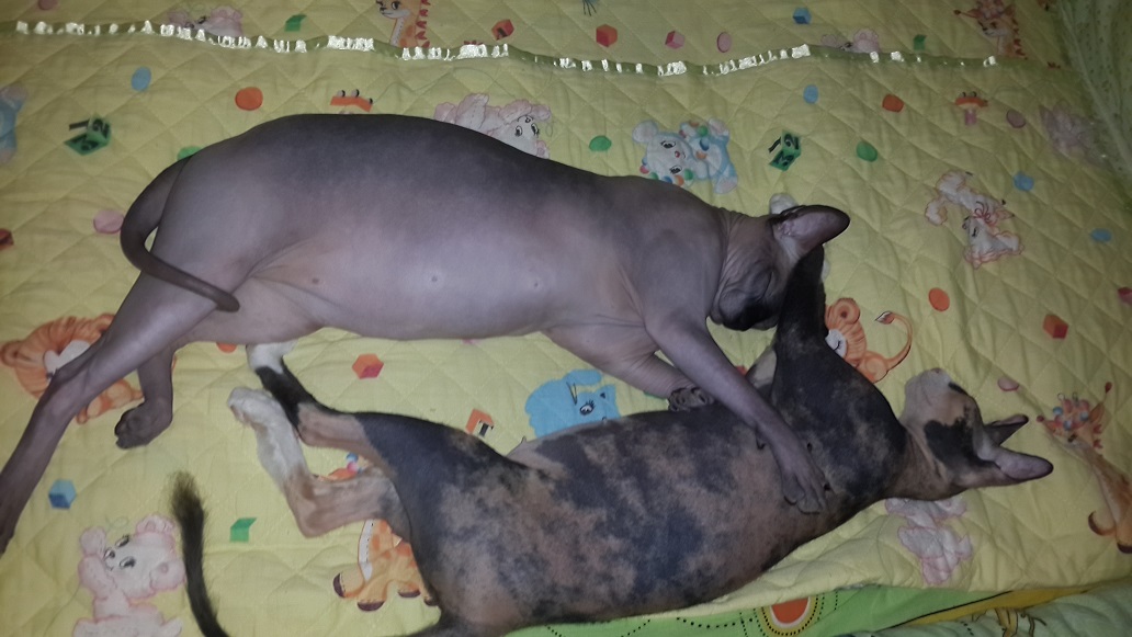Клевые замшевые котики! Не разделяла любовь к ним, пока подруга не завела сфинкса, а мне удалось с ним поспать)). Когда-нибудь тоже такую грелку заимею))AlexRIV писал(а):А это мои любимцы