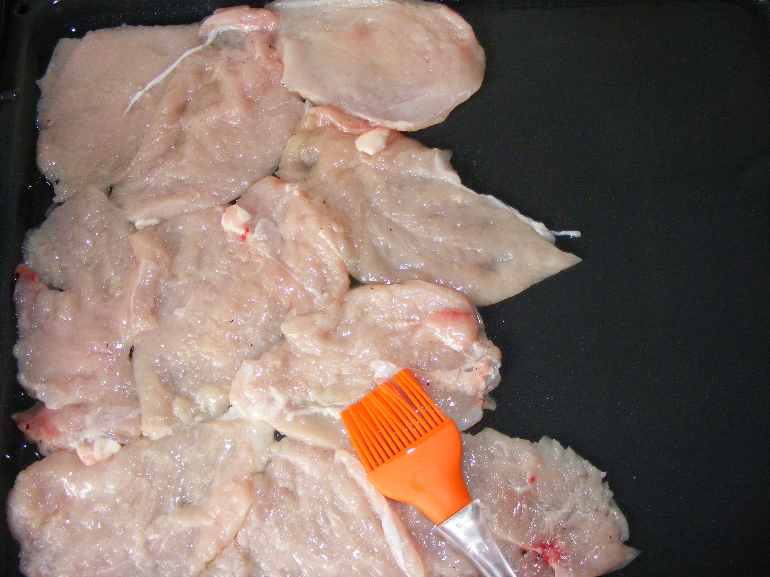 Смазываем противень, раскладываем филе