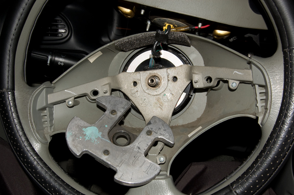 Как я понял она находится не в самом руле (там аир-баг), а чуть ниже, где рычаг регулировки руля по высоте.