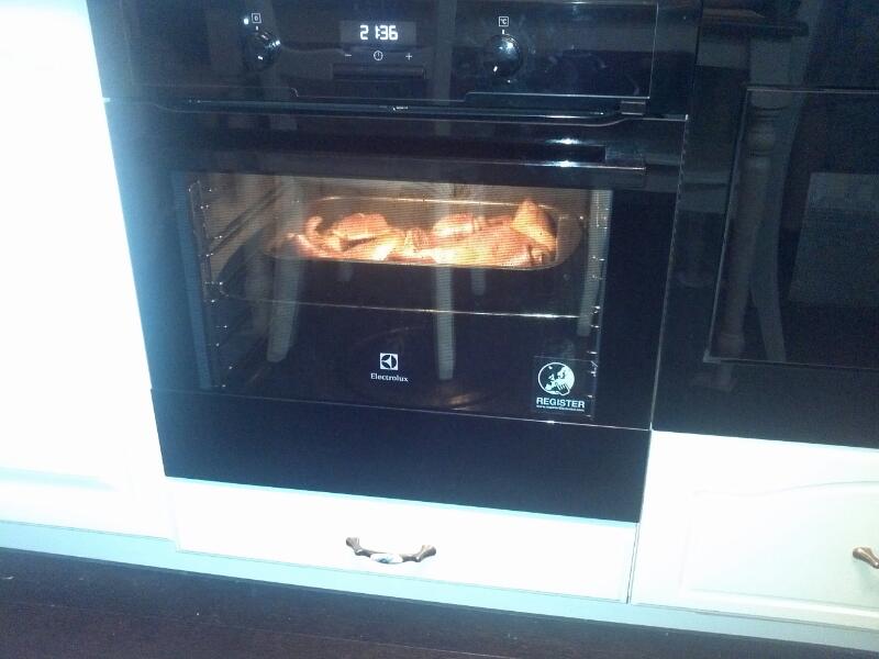 Кидаем свободненько на противень, ставим в духовку на сорок минут, если есть верхний гриль-