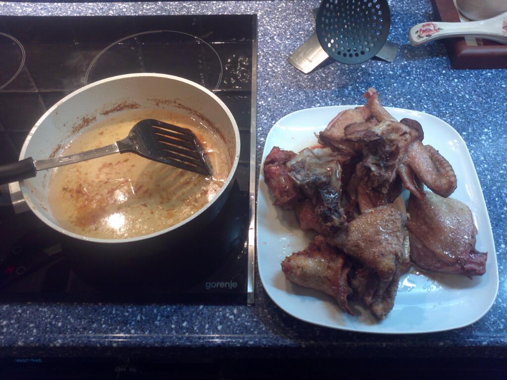Утка обжарена, хороша, сучка, жира с нее на два пальца.