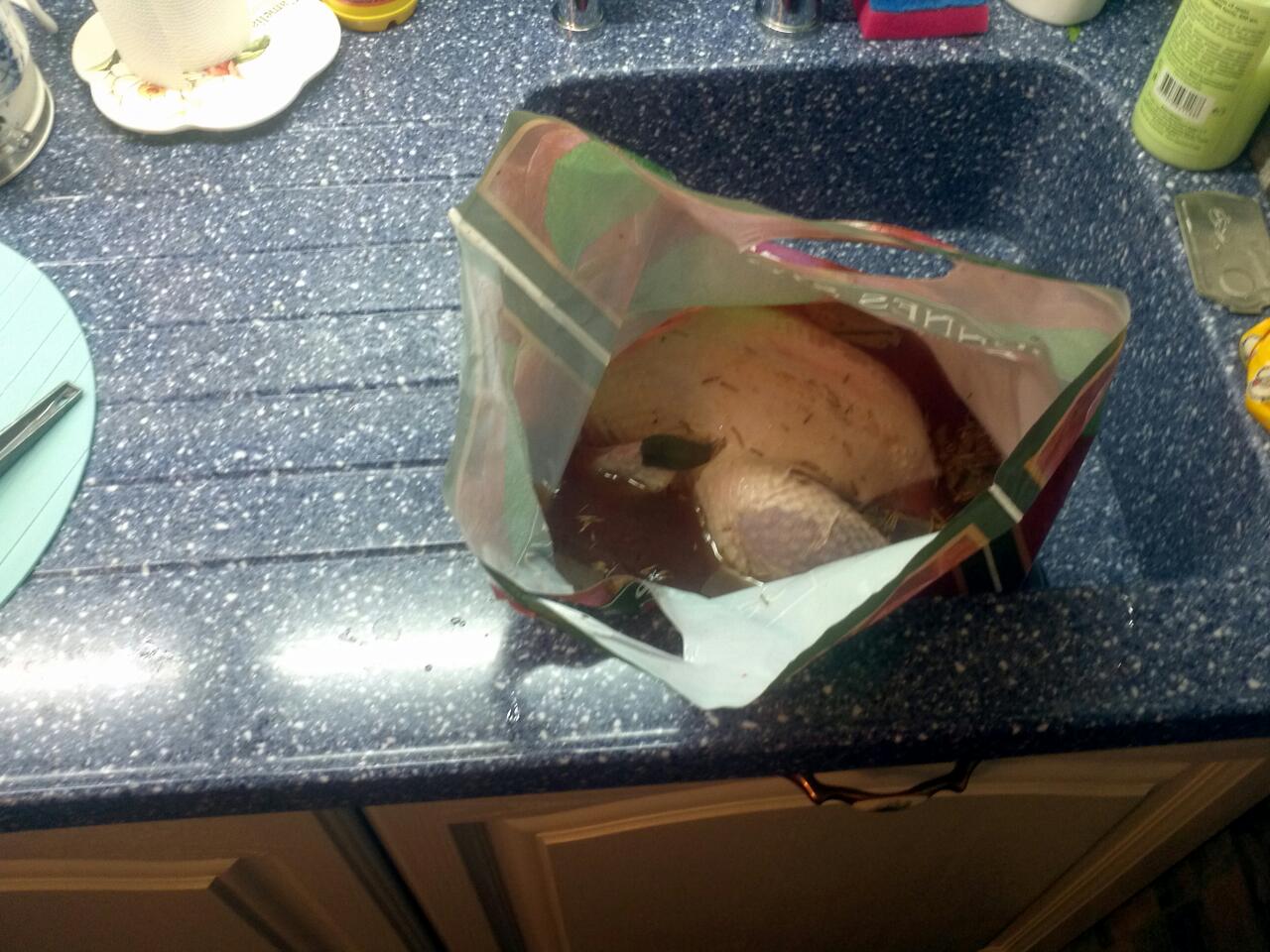 Индейку достаем из маринада, тщательно промываем и высушиваем.